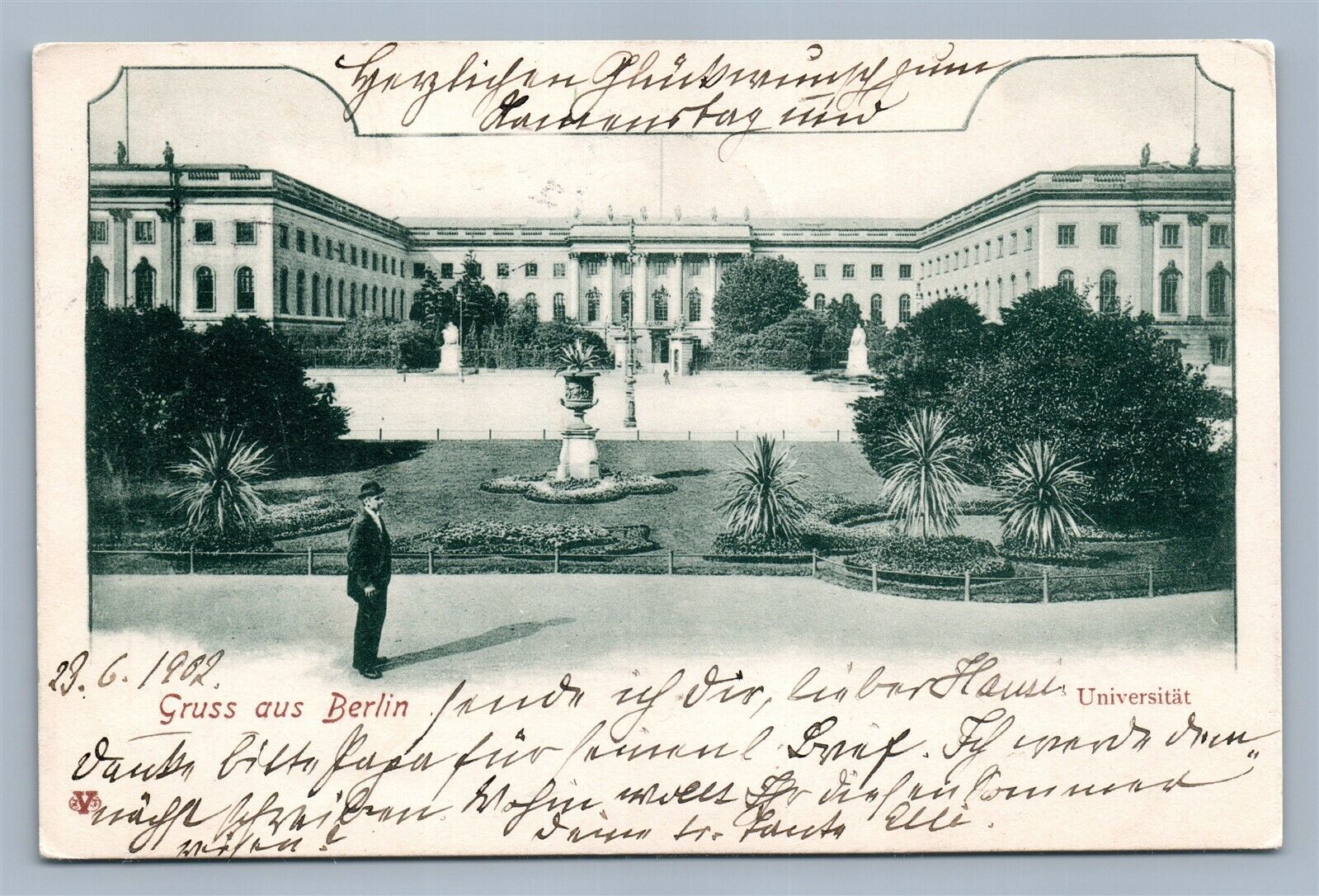 BERLIN GERMANY UNIVERSITY 1902 ANTIQUE POSTCARD w/ STAMP