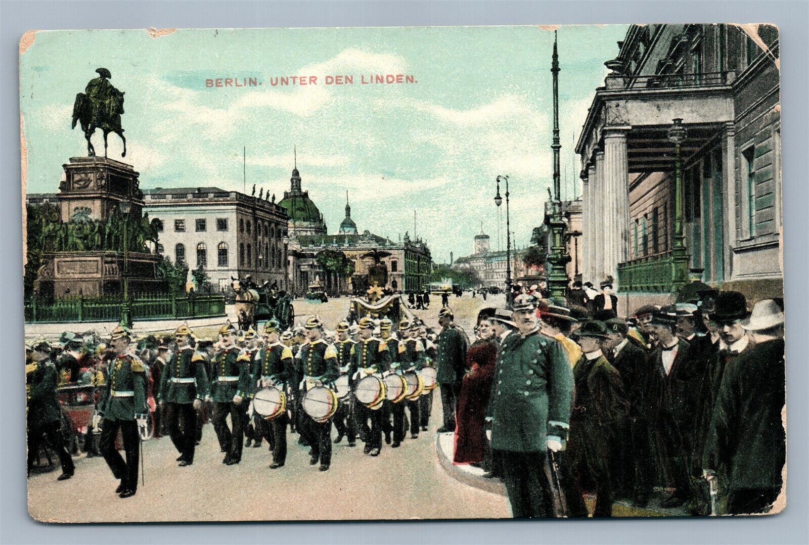 BERLIN GERMANY UNTER DEN LINDEN MILITARY PARADE 1910 ANTIQUE POSTCARD