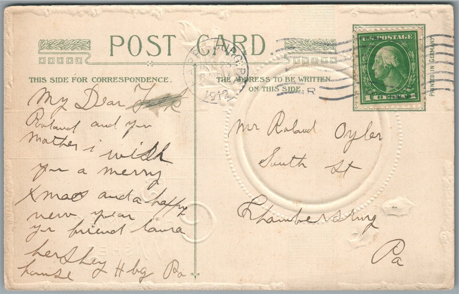 BEST CHRISTMAS GREETINGS JOHN WINSCH 1912 ANTIQUE POSTCARD