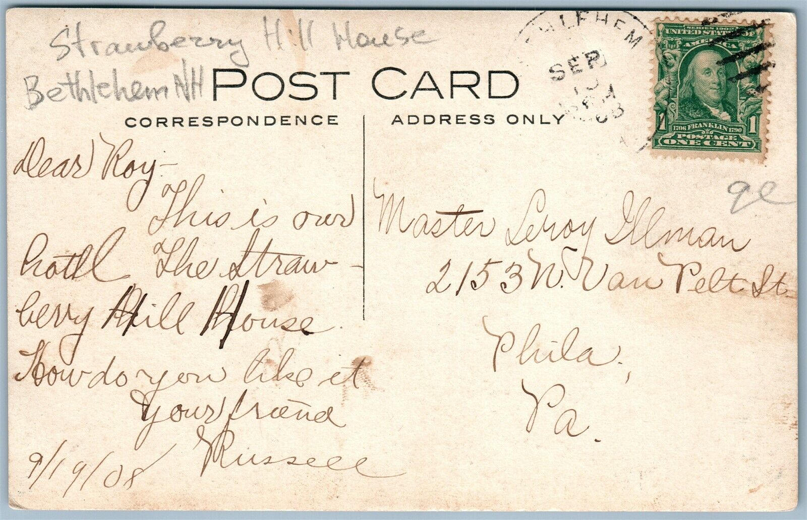 BETHLEHEM NH STRAWBERRY HILL HOUSE ANTIQUE REAL PHOTO POSTCARD RPPC