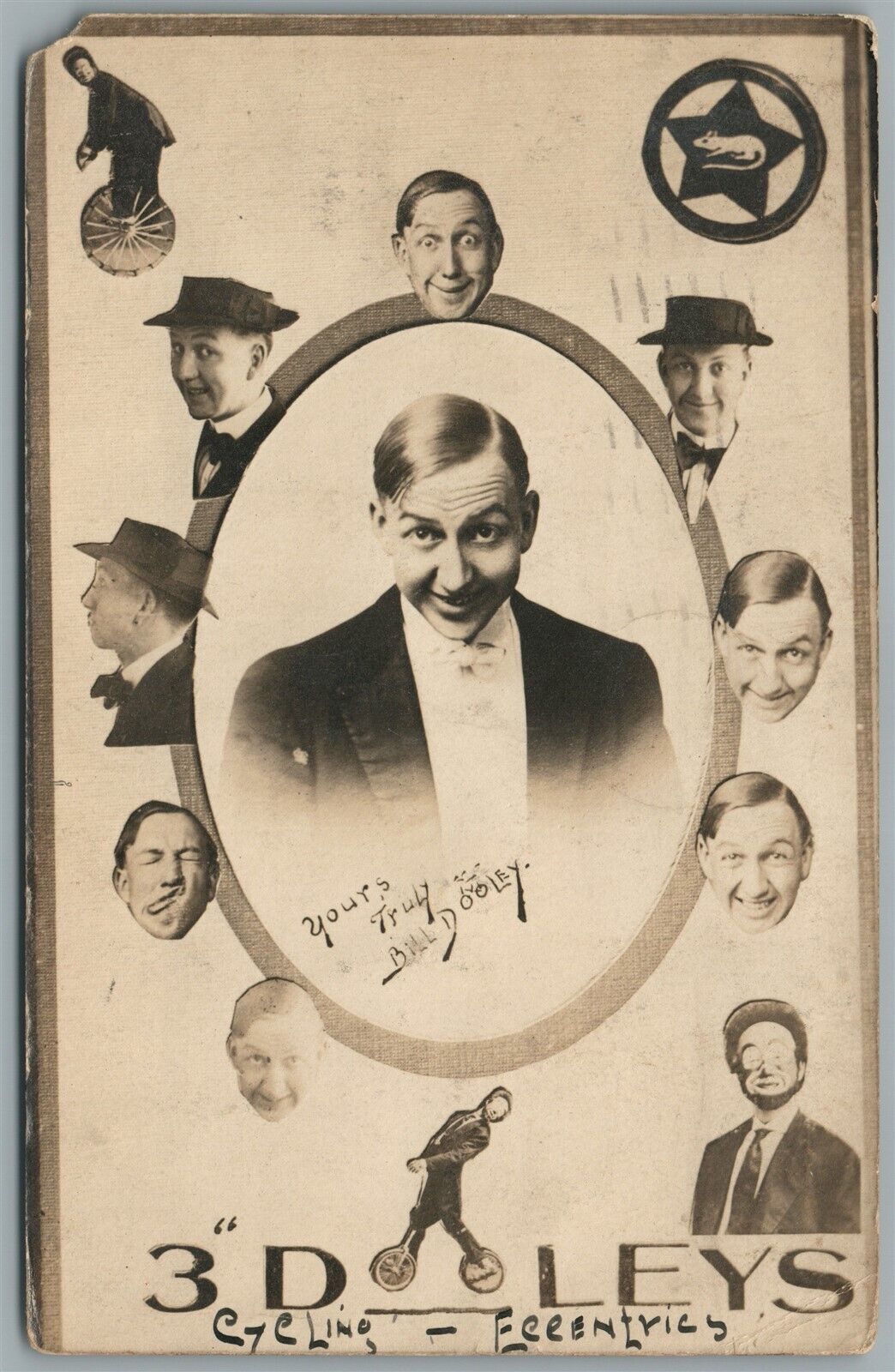 BICYCLE CIRCUS BILL DOOLEY CYCLING ECCETRICS ANTIQUE REAL PHOTO POSTCARD RPPC
