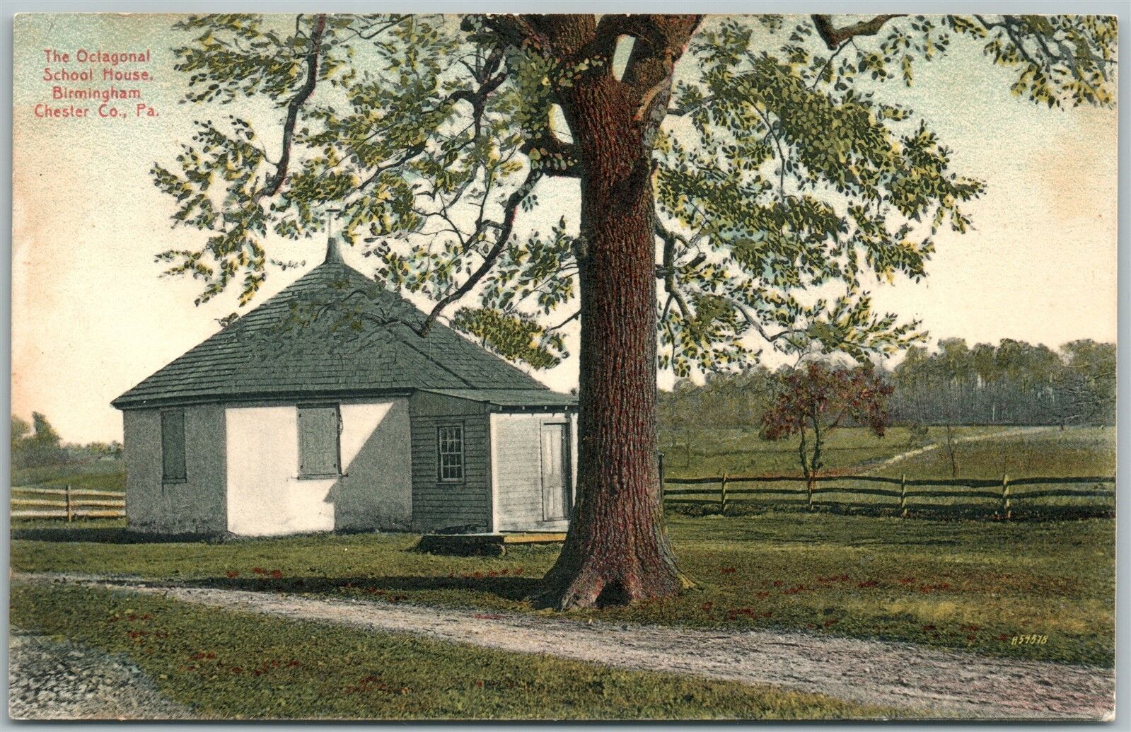 BIRMINGHAM CHESTER CO. PA 1908 OCTAGONAL SCHOOL HOUSE ANTIQUE POSTCARD
