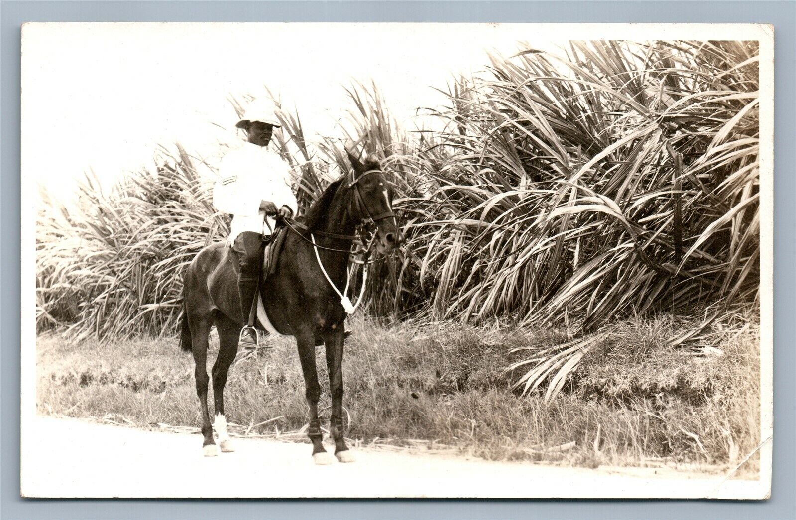 BLACK AMERICANA YOUNG HORSEMAN ANTIQUE REAL PHOTO POSTCARD RPPC