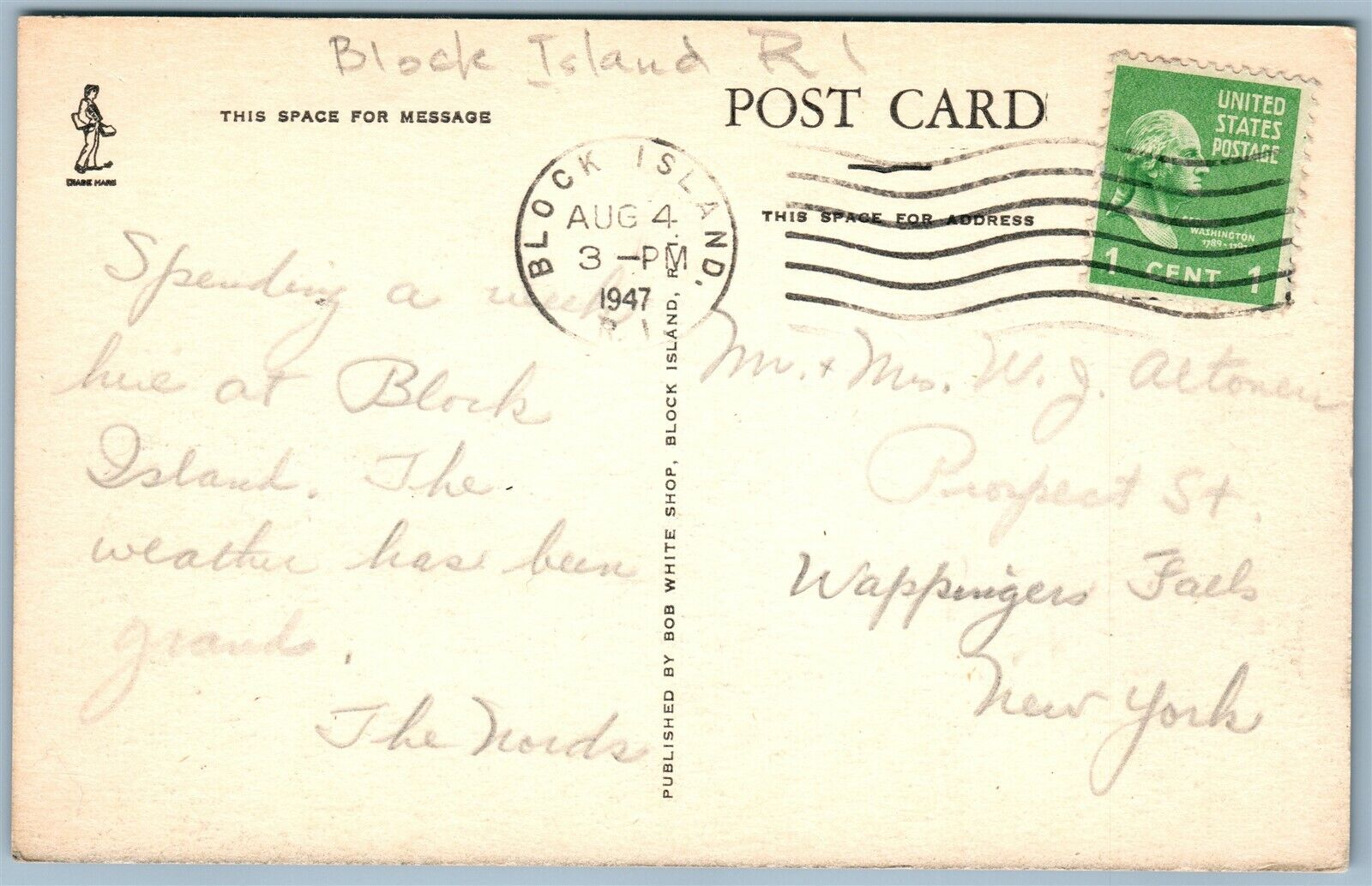 BLOCK ISLAND RI TOWN & CLAY HEAD VINTAGE POSTCARD