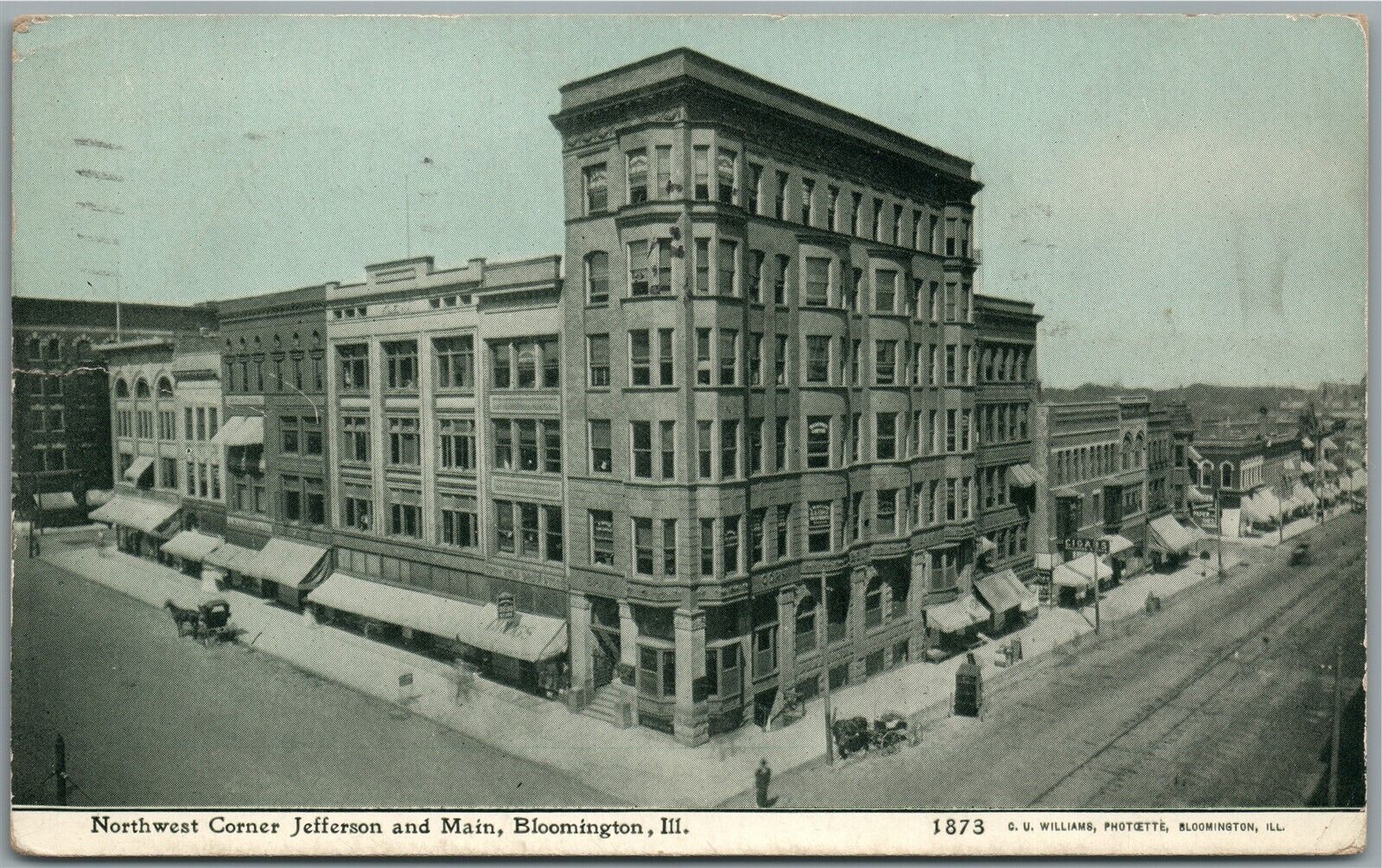 BLOOMINGTON IL CORNER FEFFERSON & MAIN ANTIQUE POSTCARD