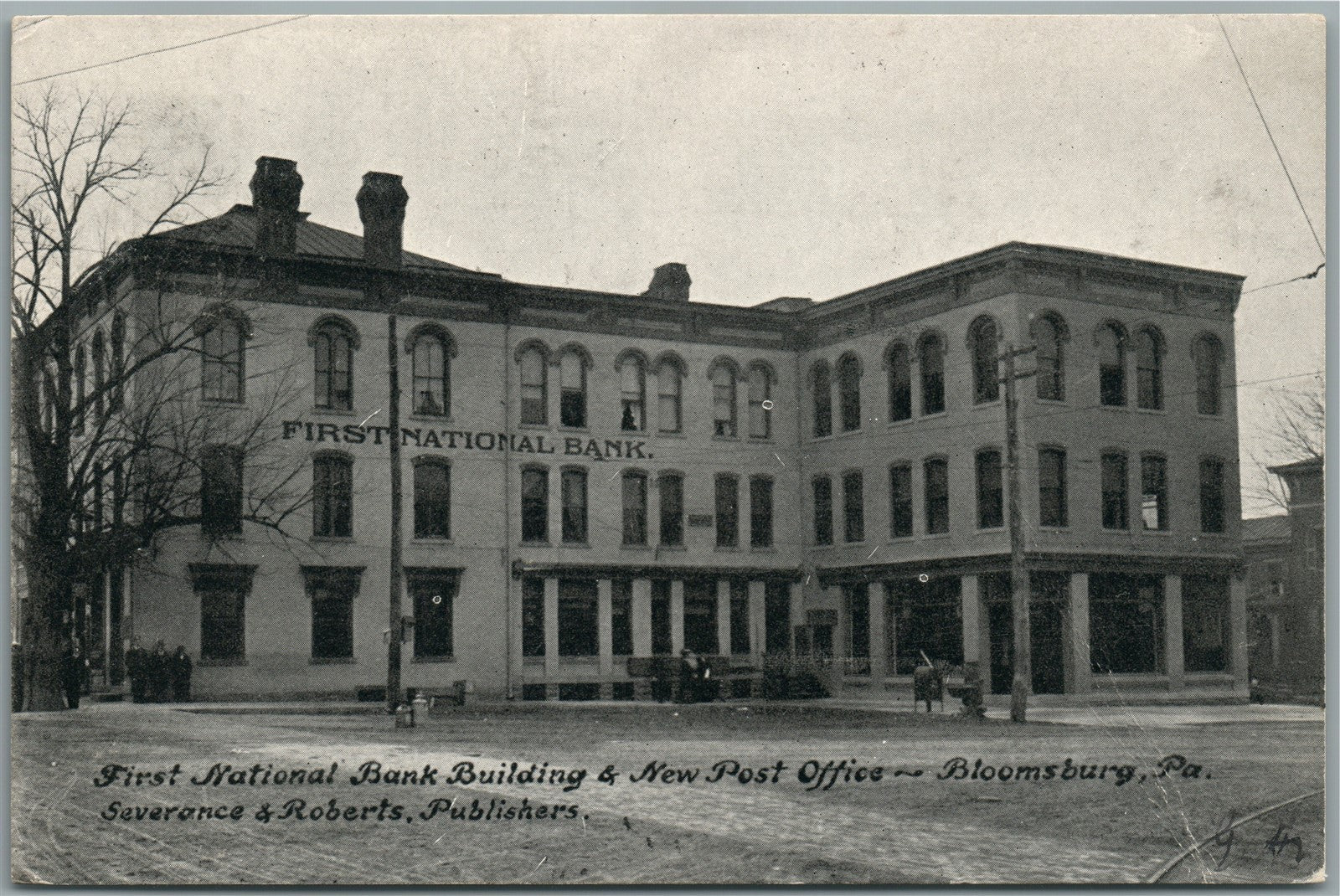 BLOOMSBURG PA FIRST NATIONAL BANK & POST OFFICE ANTIQUE POSTCARD