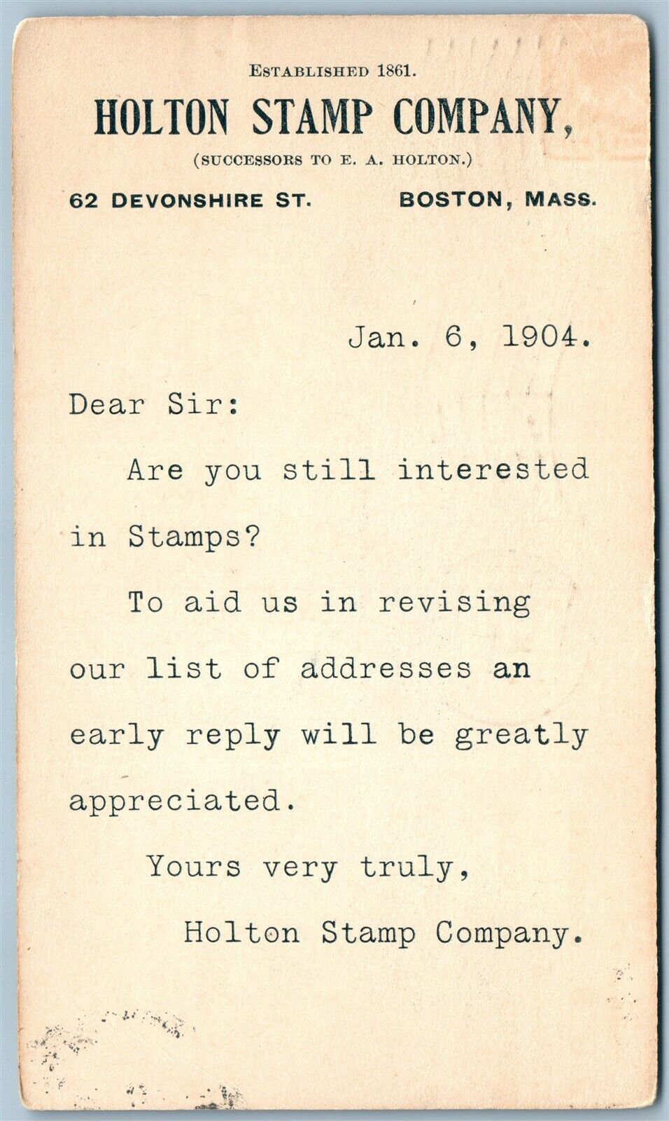 BOSTON MA HOLTON STAMP COMPANY ADVERTISING ANTIQUE POSTCARD