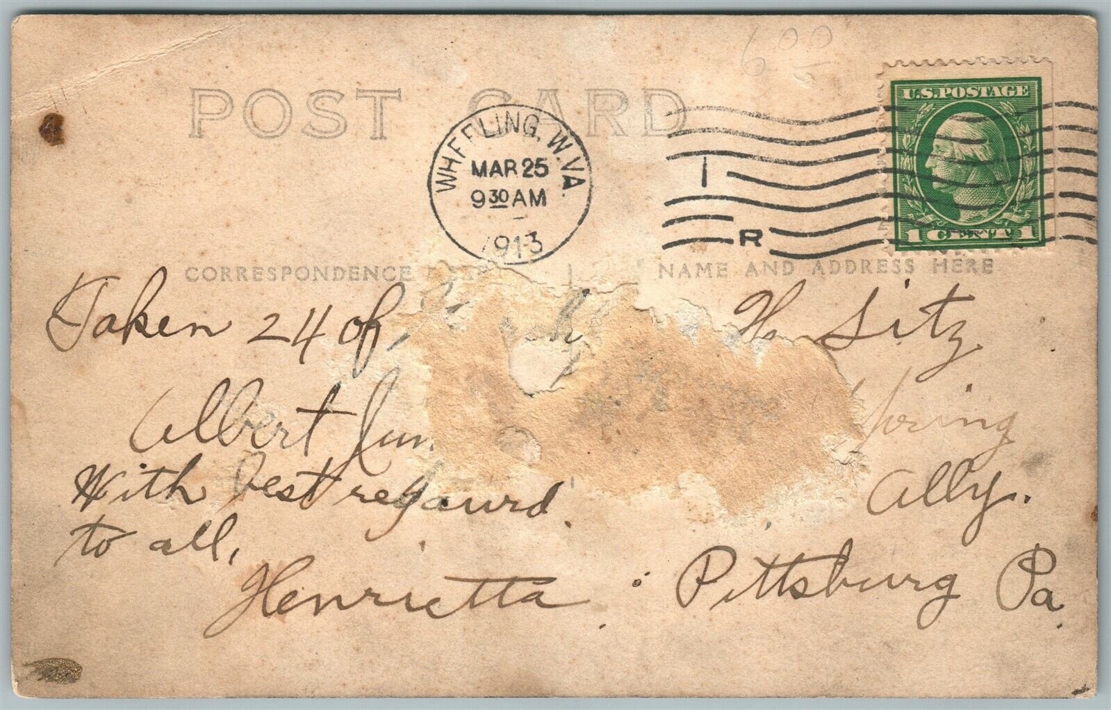 BOY on HORSE CART 1913 ANTIQUE REAL PHOTO POSTCARD RPPC PHOTOMONTAGE