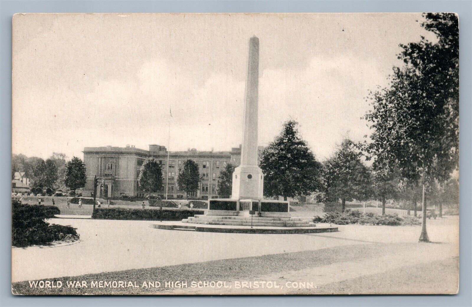 BRISTOL CT WORLD WAR MEMORIAL & HIGH SCHOOL ANTIQUE POSTCARD