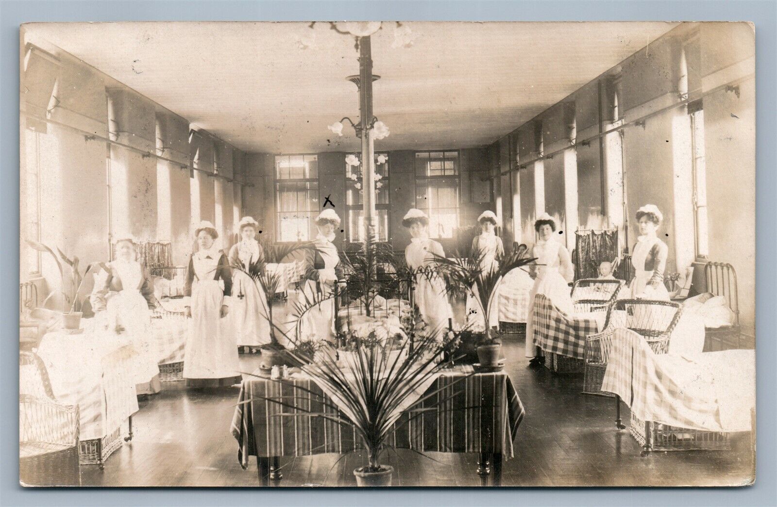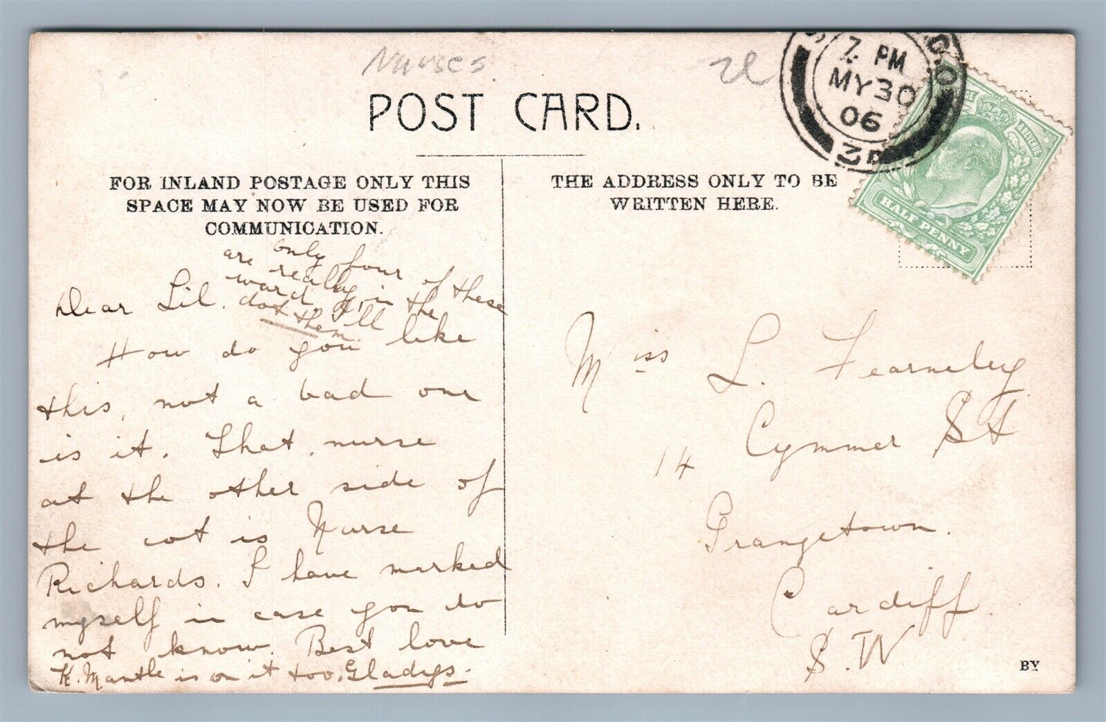 BRITISH HOSPITAL RED CROSS NURSES 1906 ANTIQUE REAL PHOTO POSTCARD RPPC