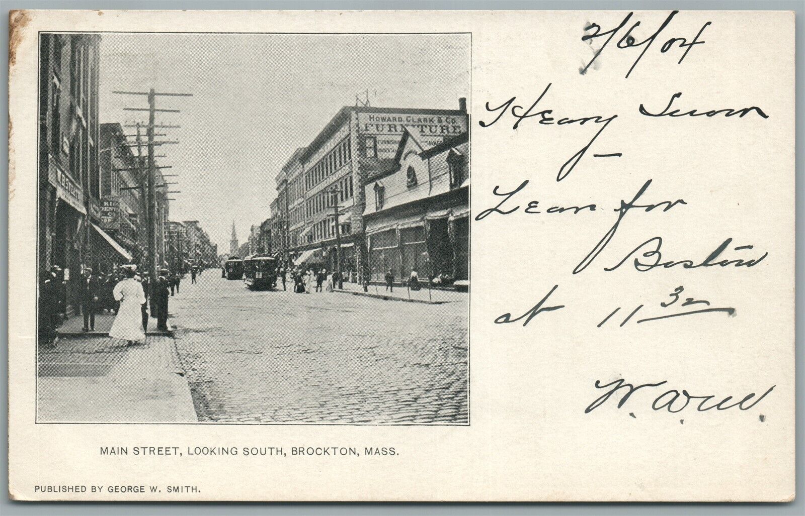 BROCKTON MA MAIN STREET LOOKING SOUTH ANTIQUE POSTCARD