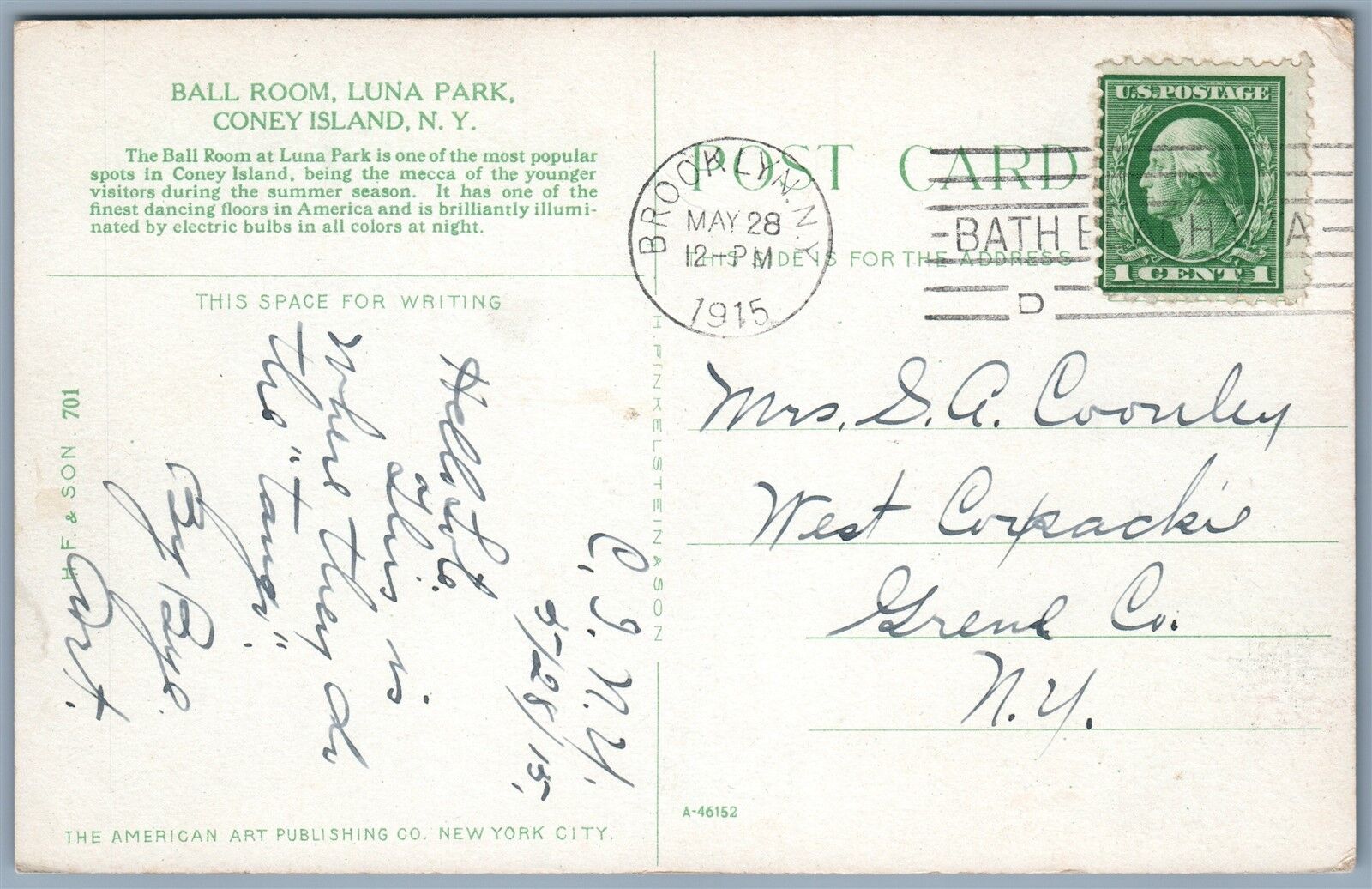 BROOKLYN NY LUNA PARK BALL ROOM 1915 ANTIQUE POSTCARD