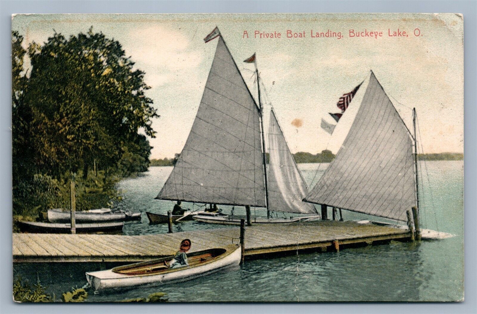 BUCKEYE LAKE OH PRIVATE BOAT LANDING 1908 ANTIQUE POSTCARD