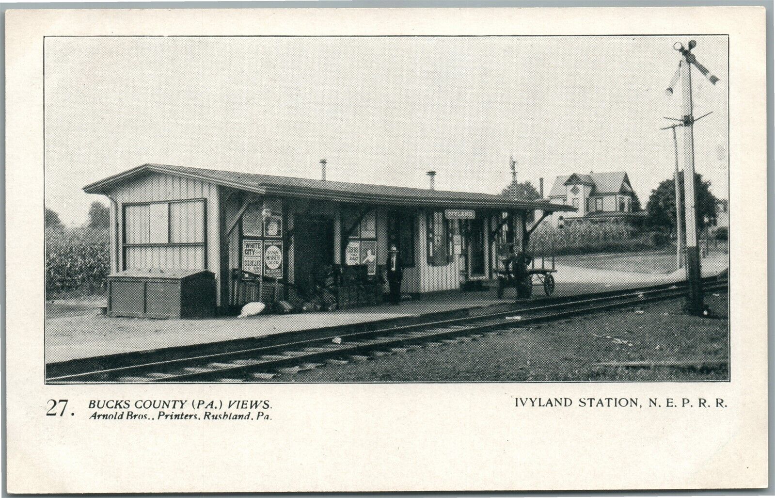 BUCKS CO. PA ARNOLD BROS. IVYLAND RAILROAD STATION ANTIQUE POSTCARD #27