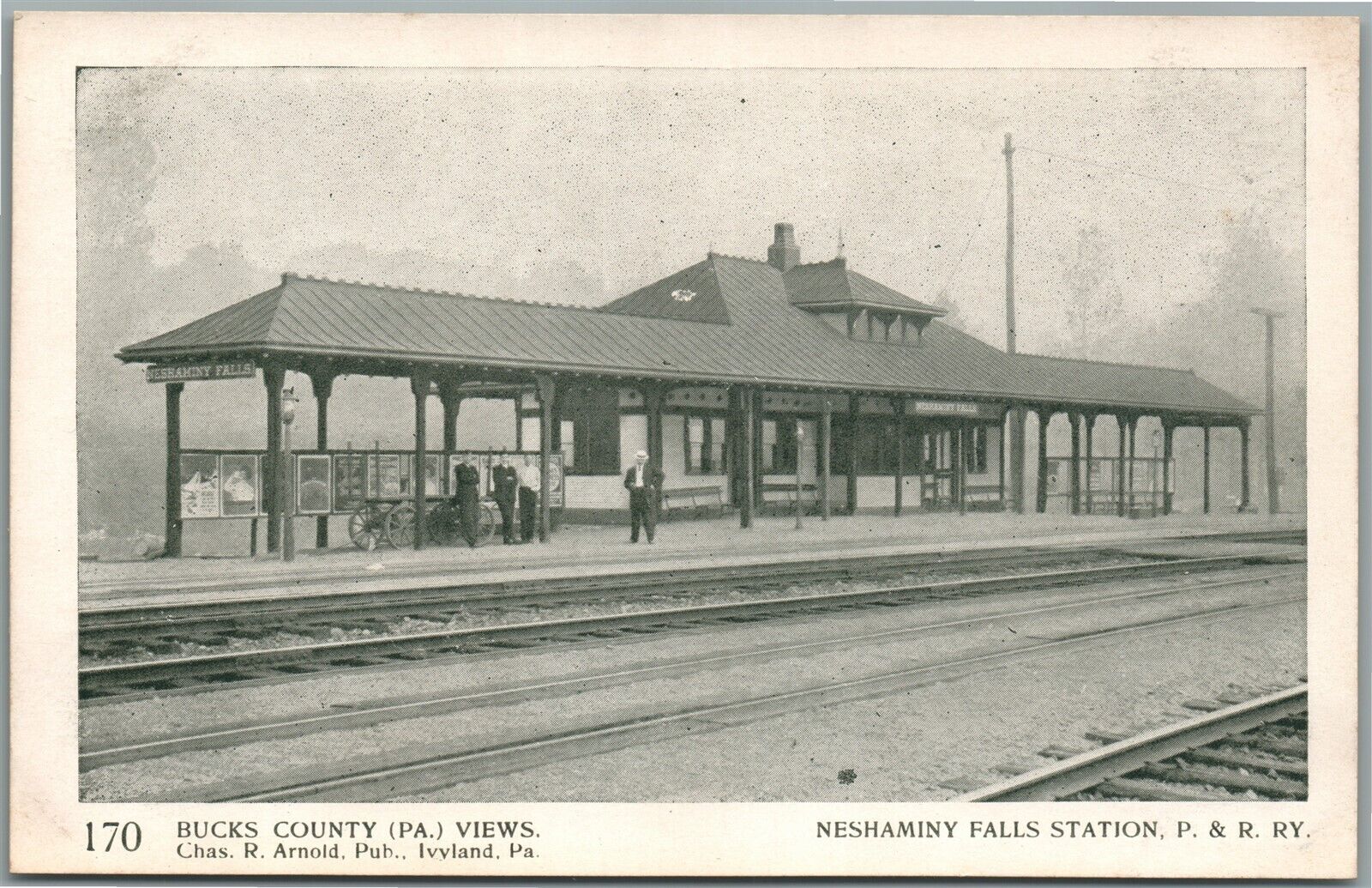 BUCKS COUNTY VIEWS CHAS. ARNOLD NESHAMINY RAILROAD STATION ANTIQUE POSTCARD #170