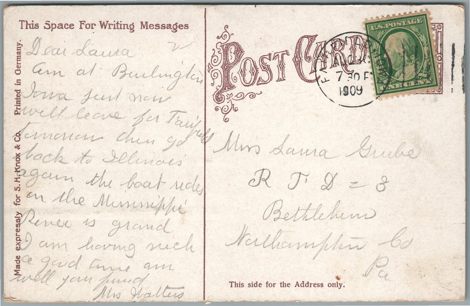 BURLINGTON IA MAIN STREET ANTIQUE POSTCARD