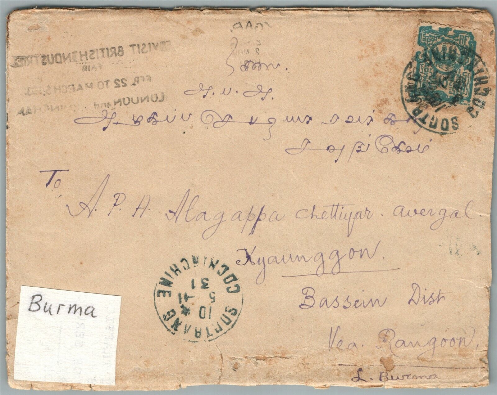 BURMA 1931 VINTAGE COVER w/ STAMP BRITISH INDUSTRIES FAIR CANCEL