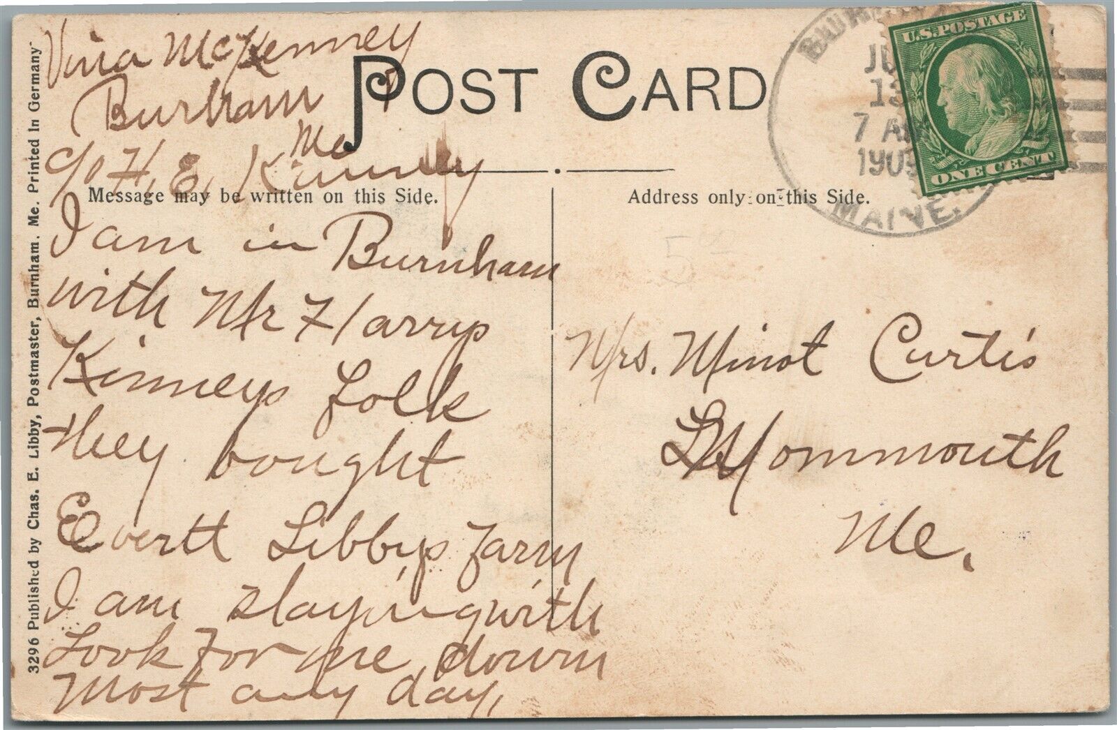 BURNHAM ME AVAILABLE WATER POWER ANTIQUE POSTCARD
