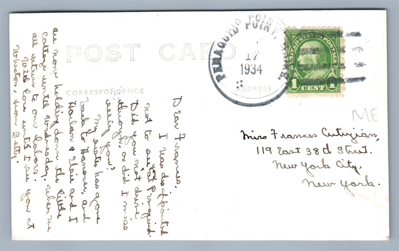 BURNT ISLAND ME LIGHT HOUSE VINTAGE 1934 REAL PHOTO POSTCARD RPPC
