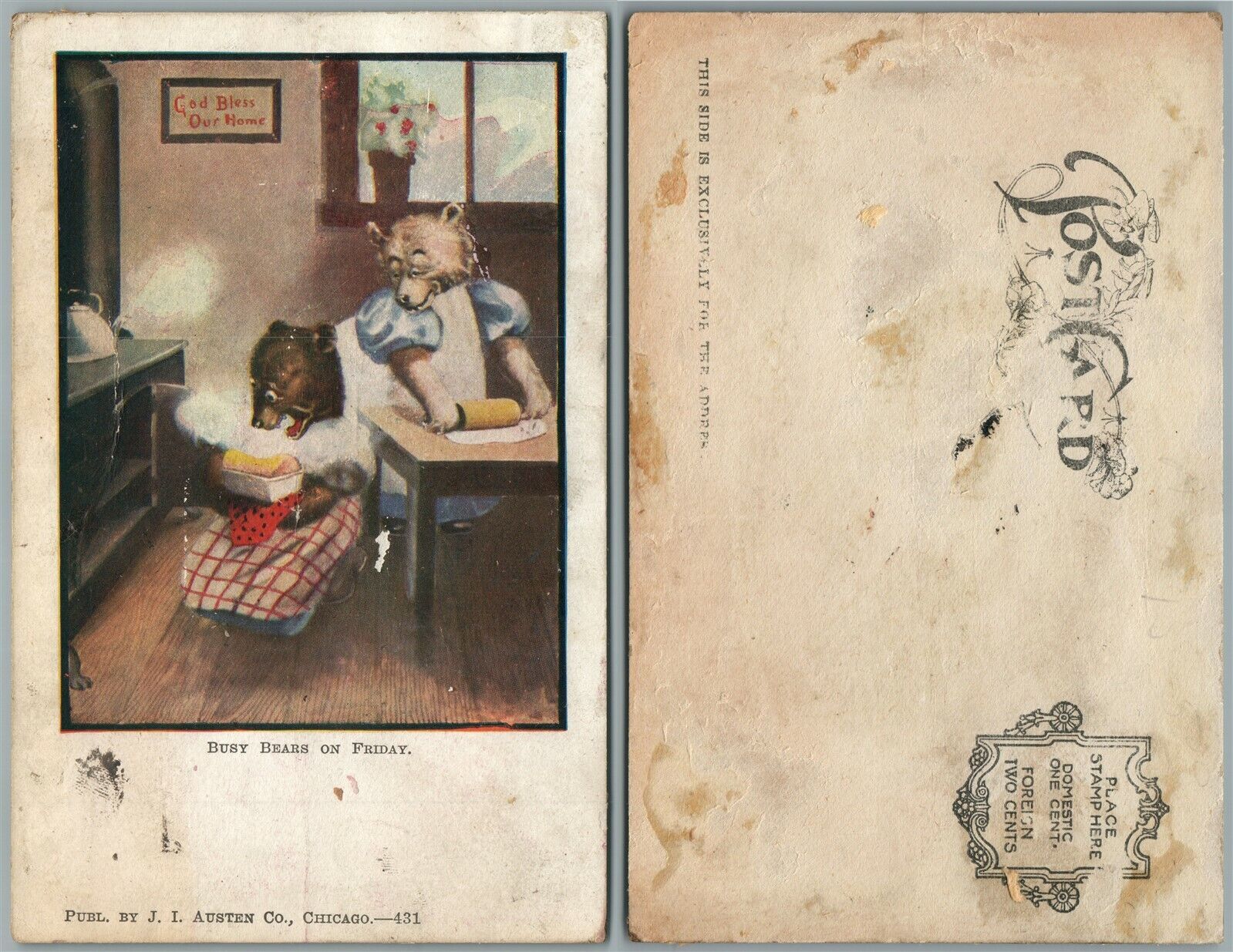 BUSY BEARS ON FRIDAY ANTIQUE UNDIVIDED POSTCARD