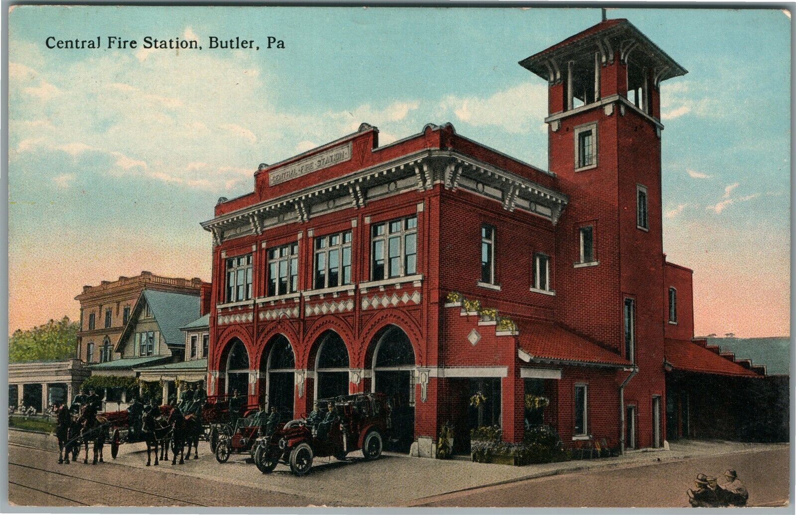BUTLER PA CENTRAL FIRE STATION ANTIQUE POSTCARD