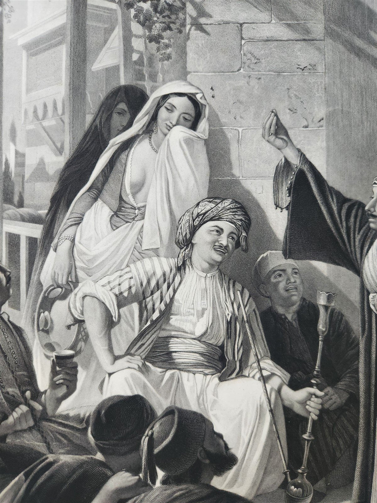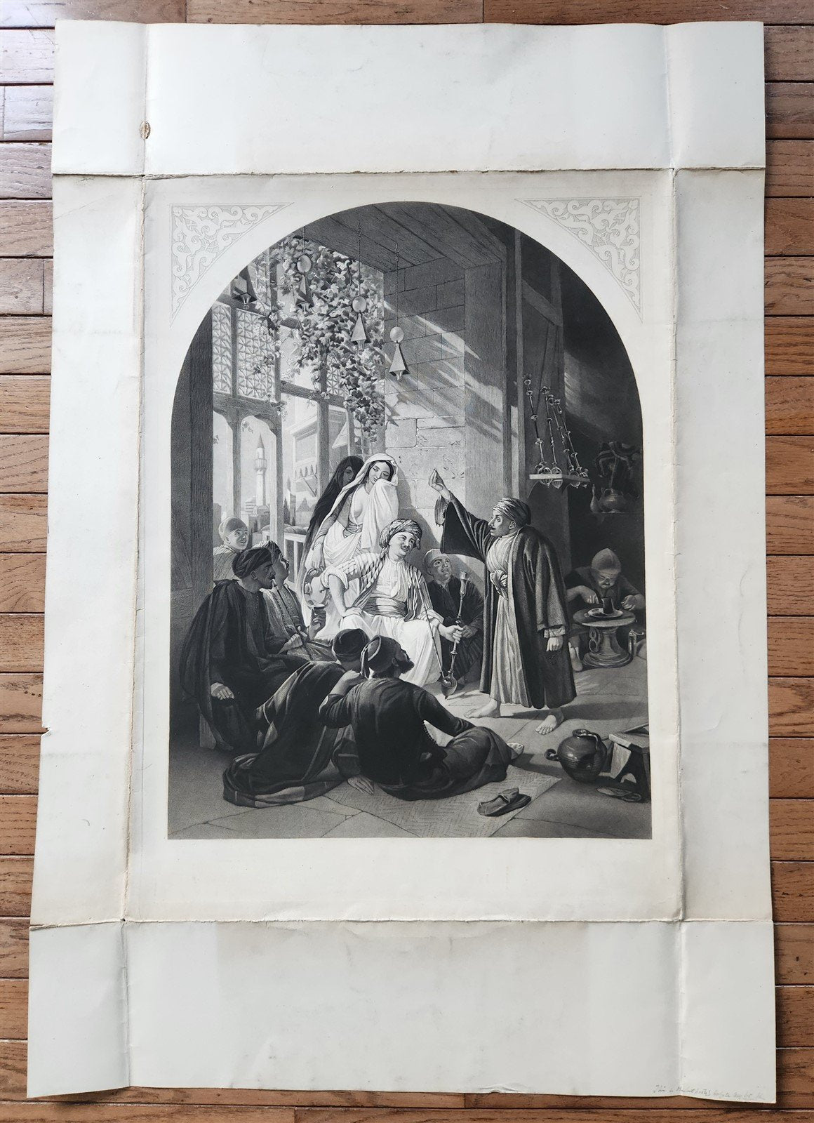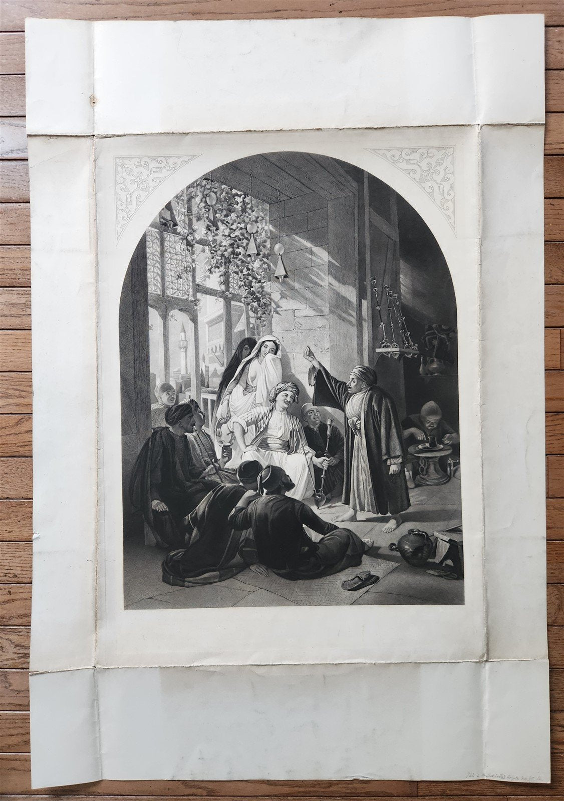 c.1867 ARABIAN NIGHTS LARGE ENGRAVING antique DAMASCUS STORY TELLER 27 x 40"