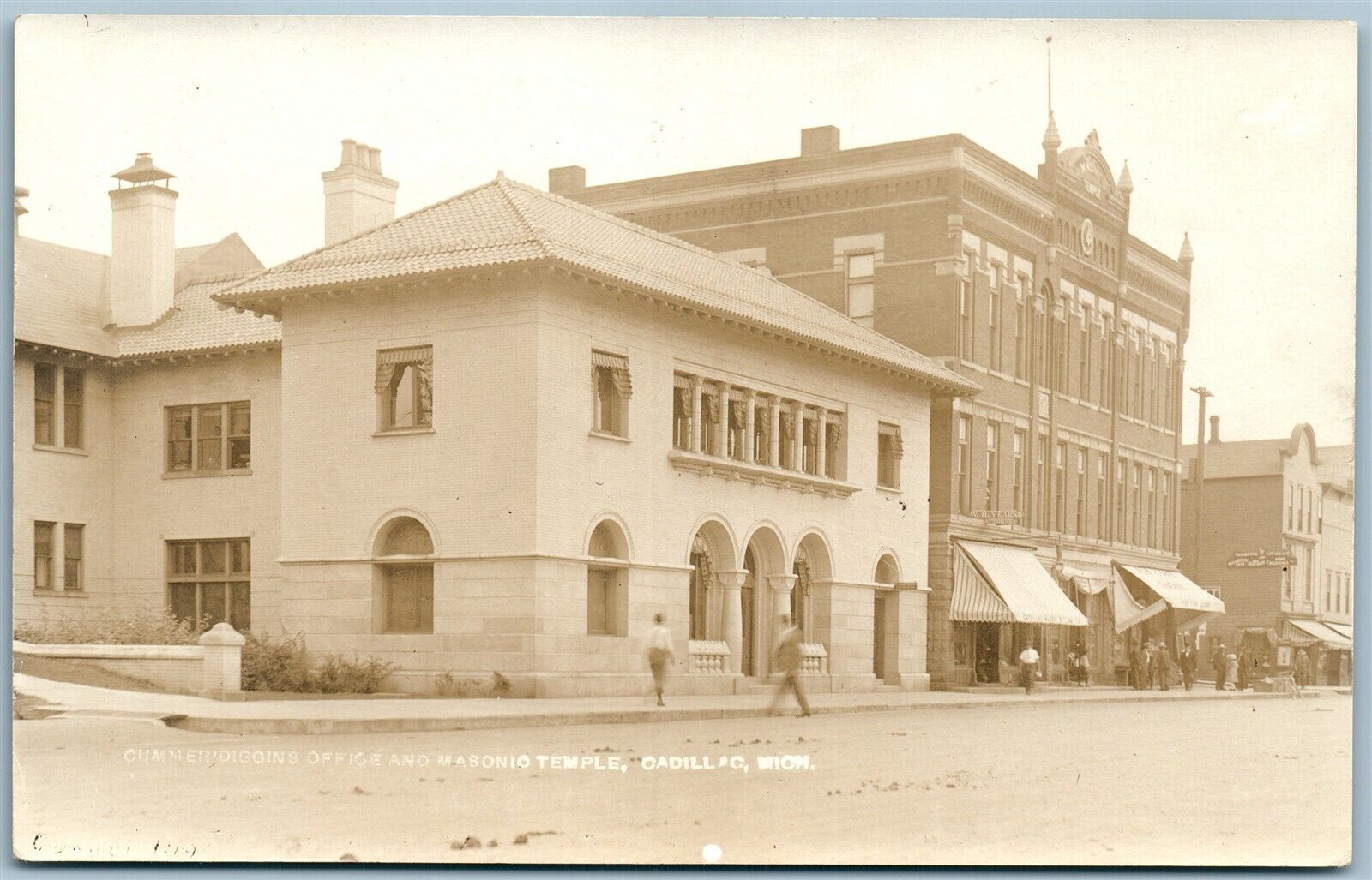 CADILLAC MI MASONIC TEMPLE CUMMERDIGGINS OFFICE ANTIQUE REAL PHOTO POSTCARD RPPC