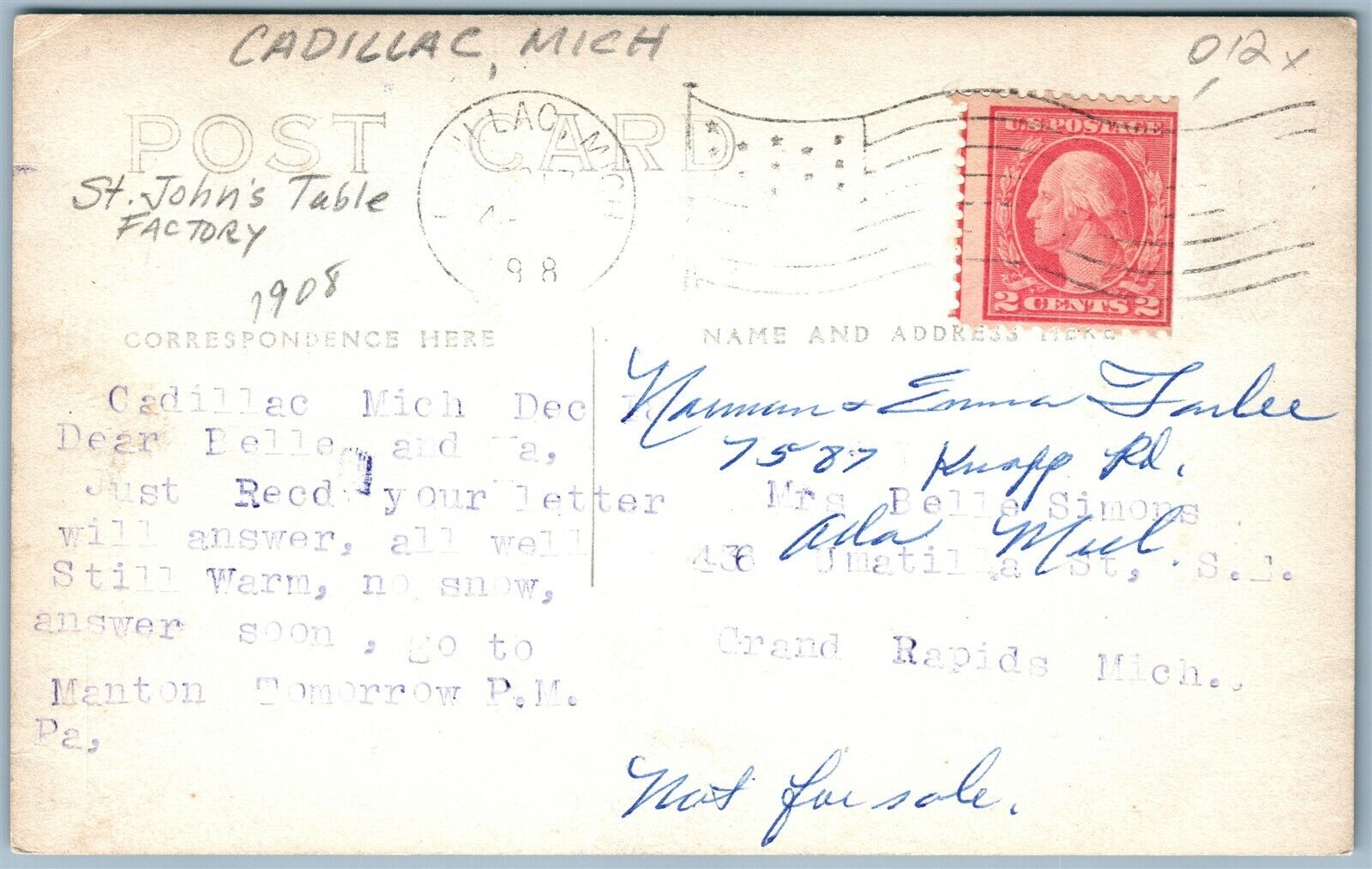 CADILLAC MI ST. JOHN'S TABLE COMPANY PLANT ANTIQUE REAL PHOTO POSTCARD RPPC