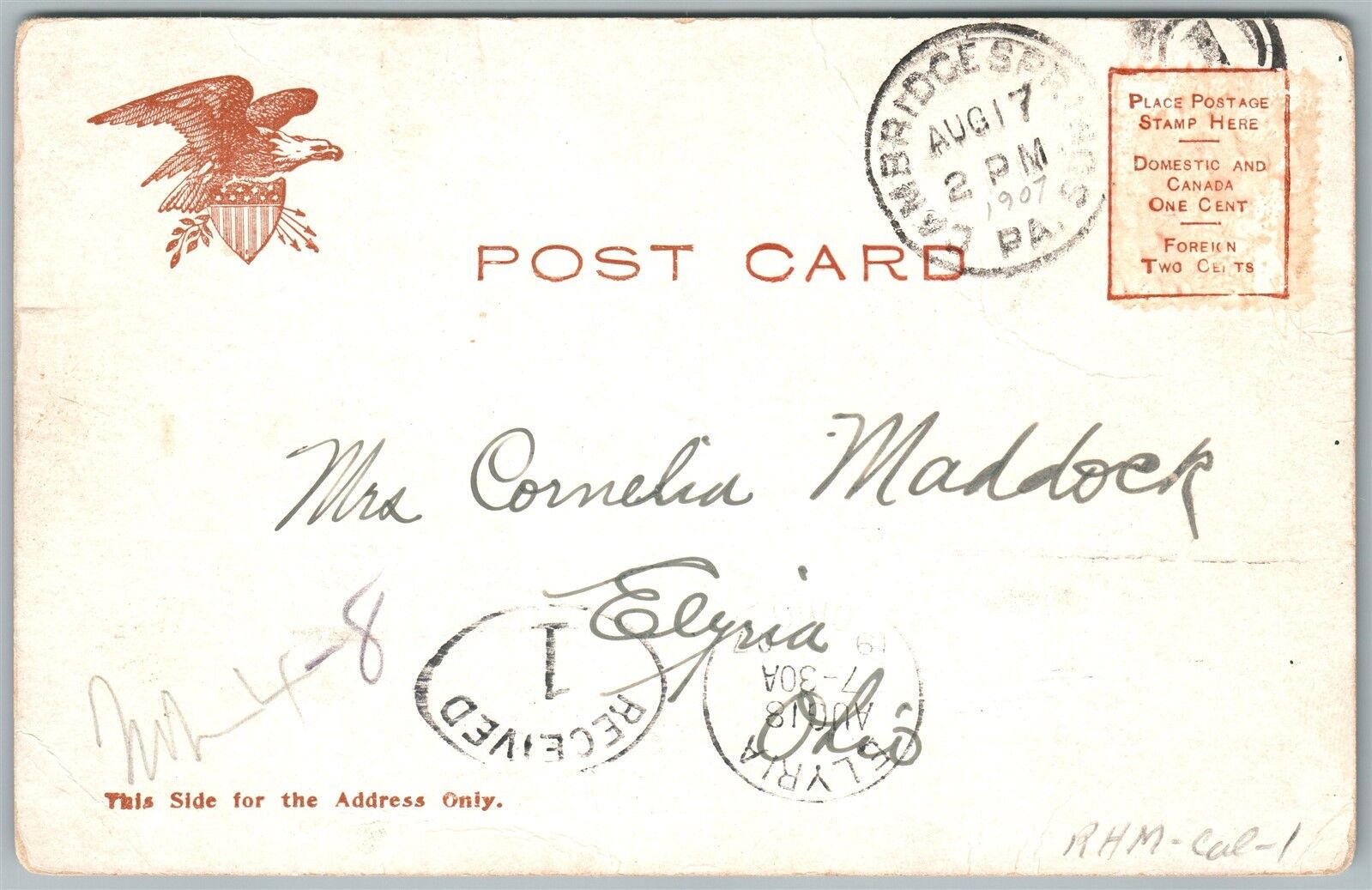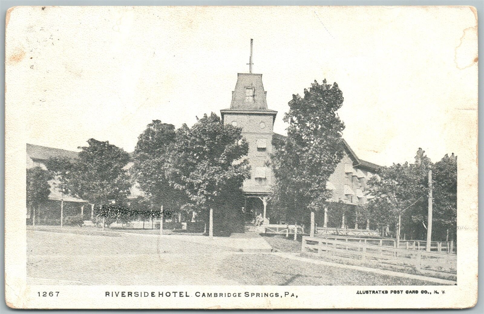 CAMBRIDGE SPRINGS PA RIVERSIDE HOTEL 1907 UNDIVIDED ANTIQUE POSTCARD