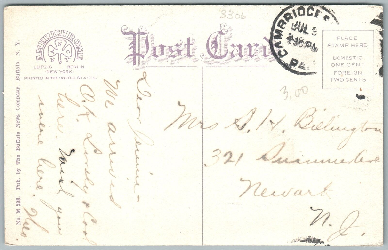 CAMBRIDGE SPRINGS PA RIVERSIDE HOTEL ANTIQUE POSTCARD