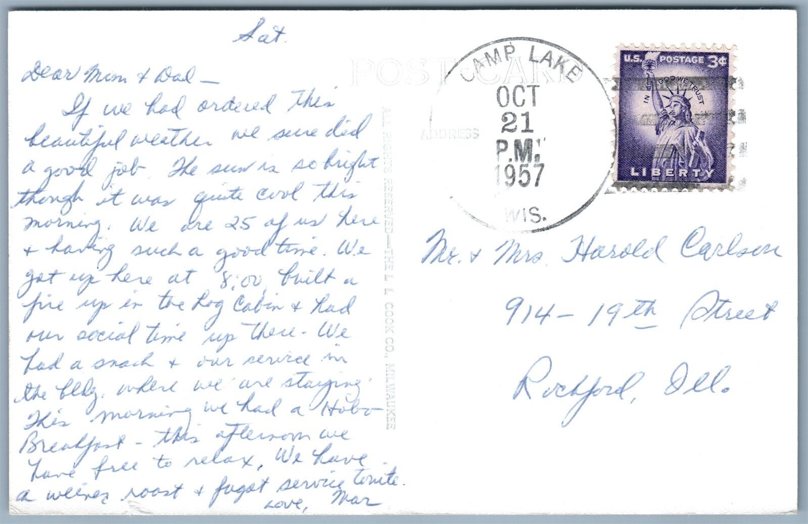 CAMP LAKE WI SALVATION ARMY SHAGBARK CAMP 1957 VINTAGE REAL PHOTO POSTCARD RPPC