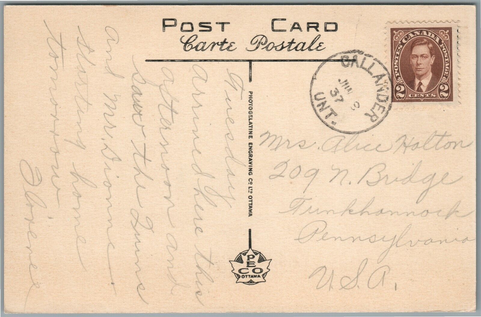 CANADA CALLANDER DAFOE HOSPITAL VINTAGE POSTCARD