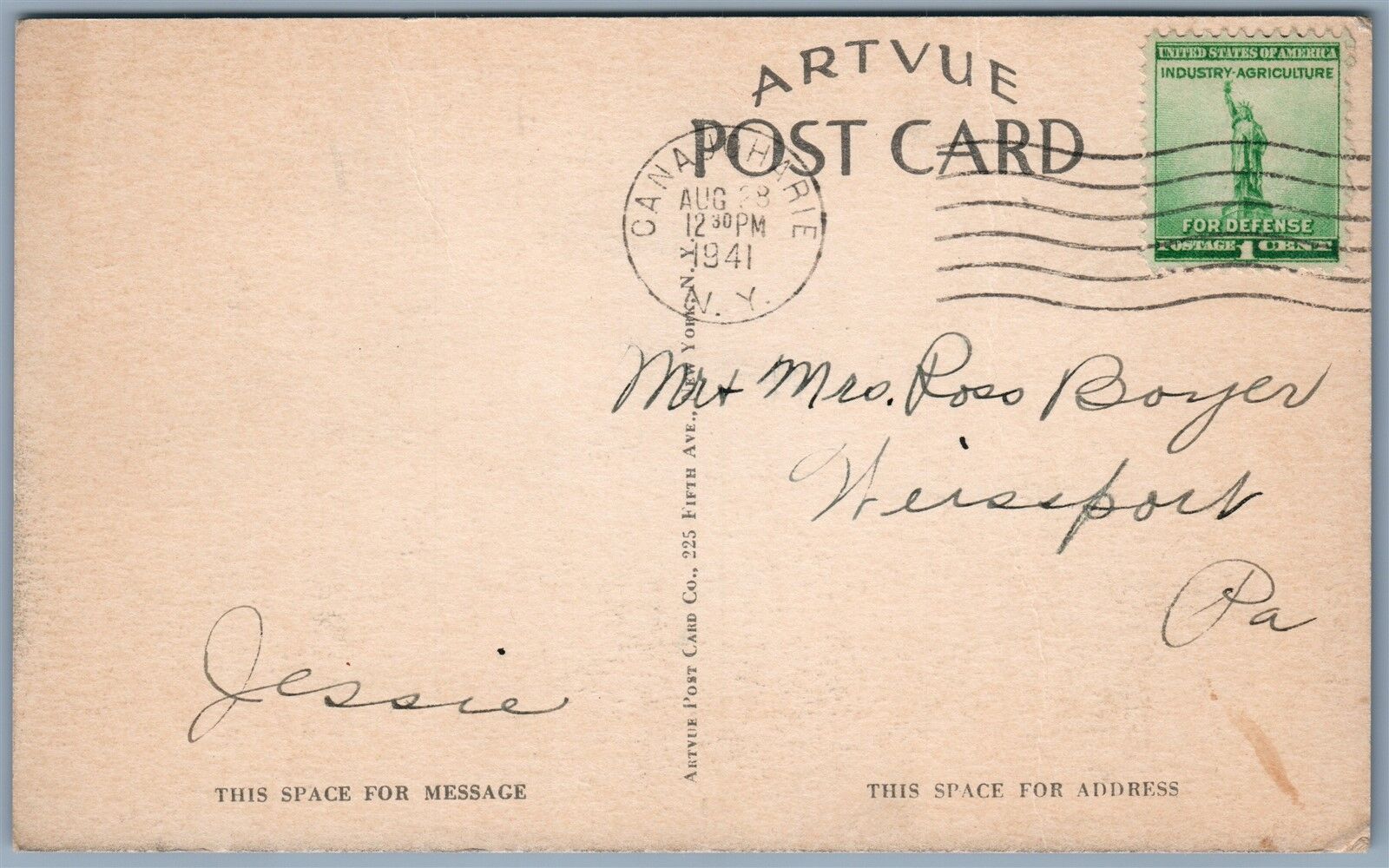 CANAJOHARIE NY ARKELL MEMORIAL LIBRARY 1941 VINTAGE POSTCARD