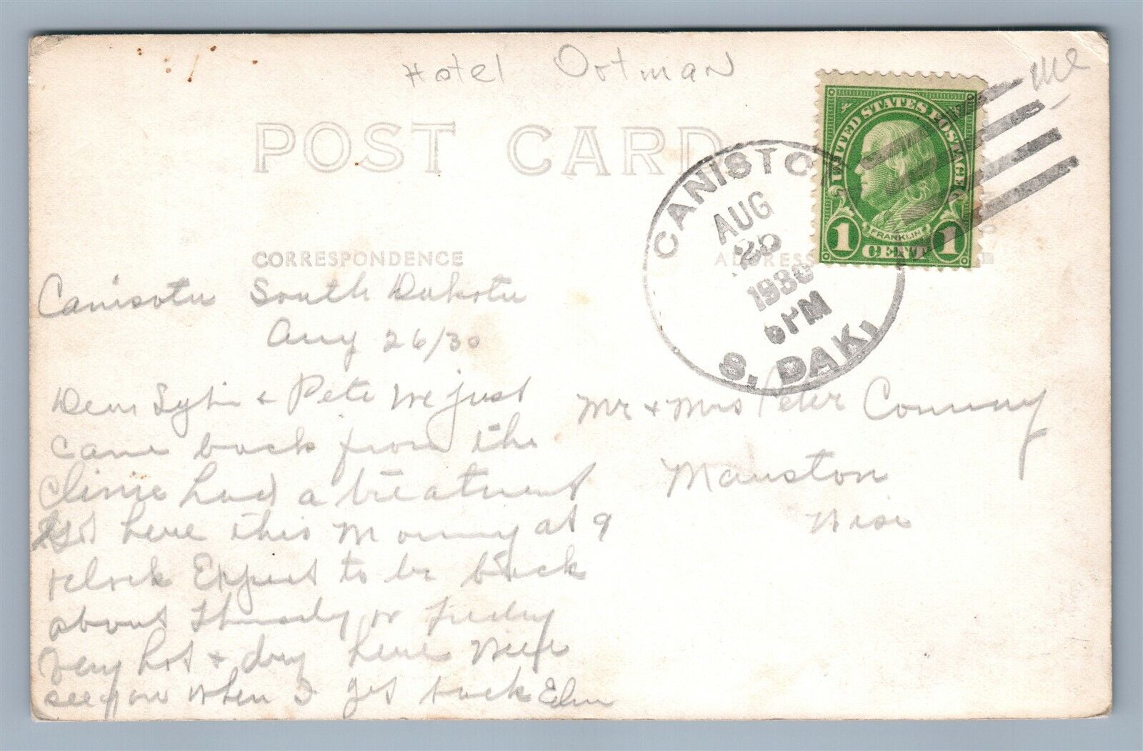 CANISTOTA SD HOTEL ORTMAN CARS TRUCKS ANTIQUE REAL PHOTO POSTCARD RPPC