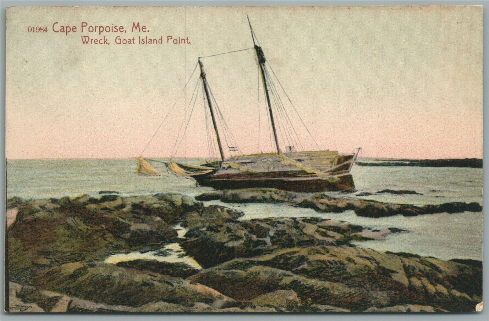 CAPE PORPOISE ME GOAT ISLAND POINT WRECK ANTIQUE POSTCARD