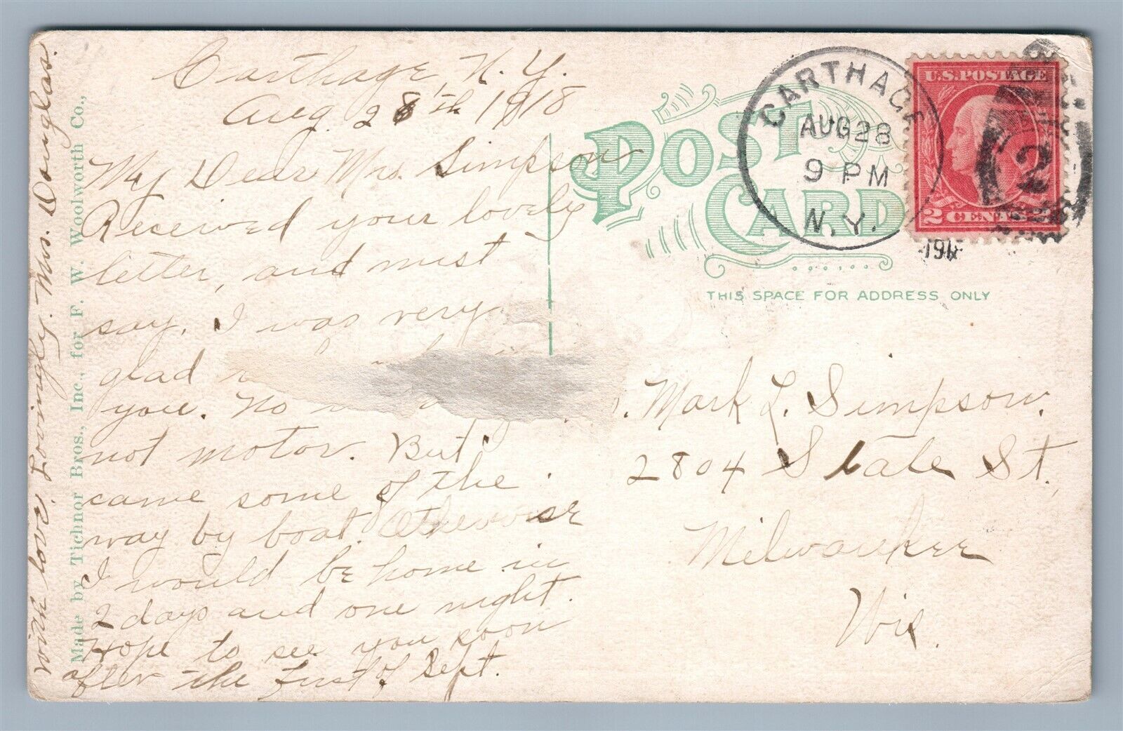 CARTHAGE NY BLACK RIVER ANTIQUE POSTCARD