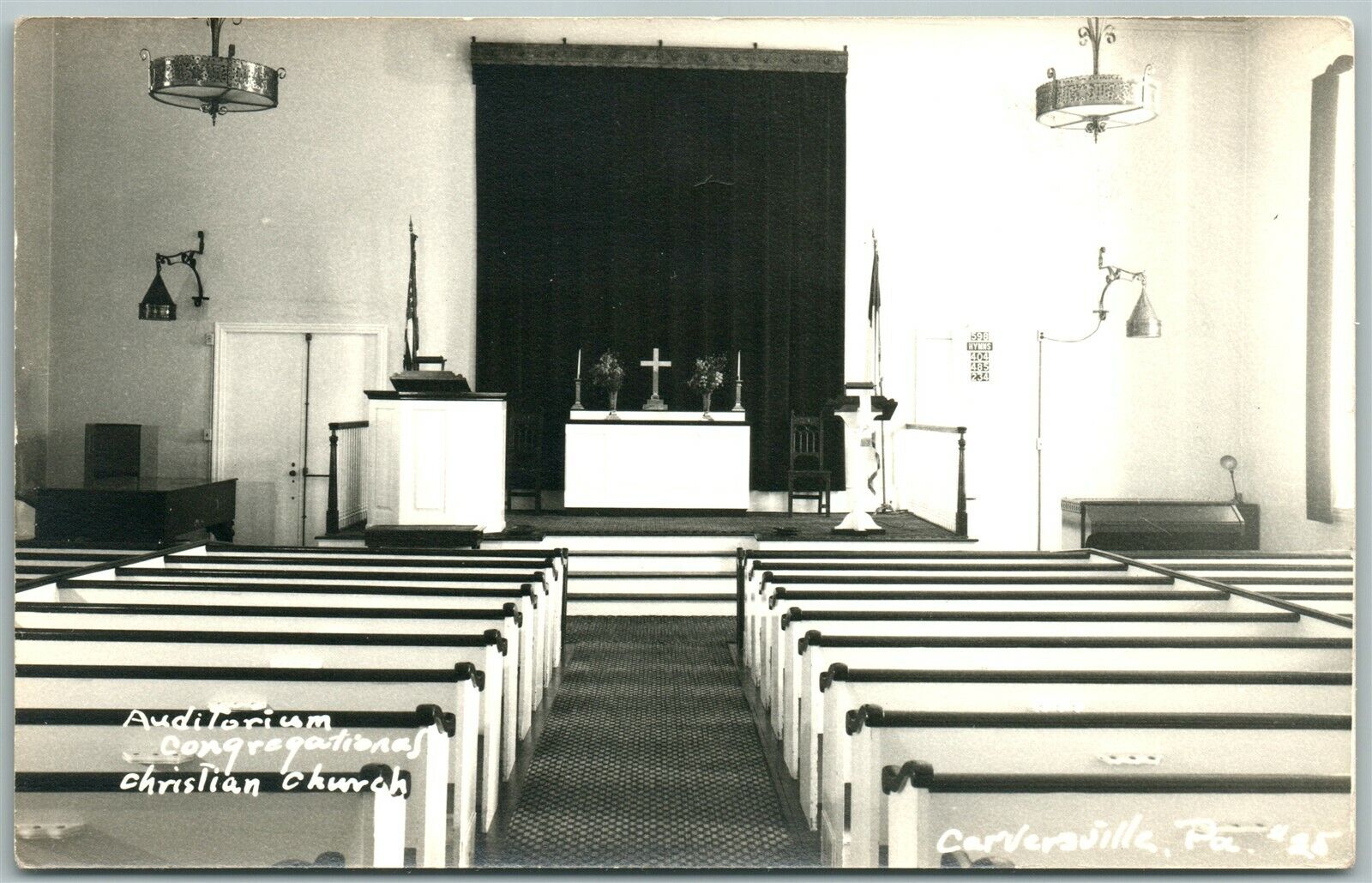 CARVERSVILLE PA CHRISTIAN CHURCH INTERIOR ANTIQUE REAL PHOTO POSTCARD RPPC