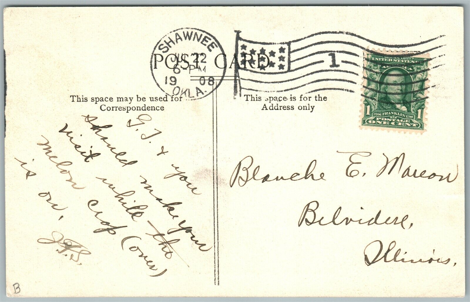 CARVING WATERMELONS IN OKLAHOMA EXAGGERATED 1908 ANTIQUE POSTCARD