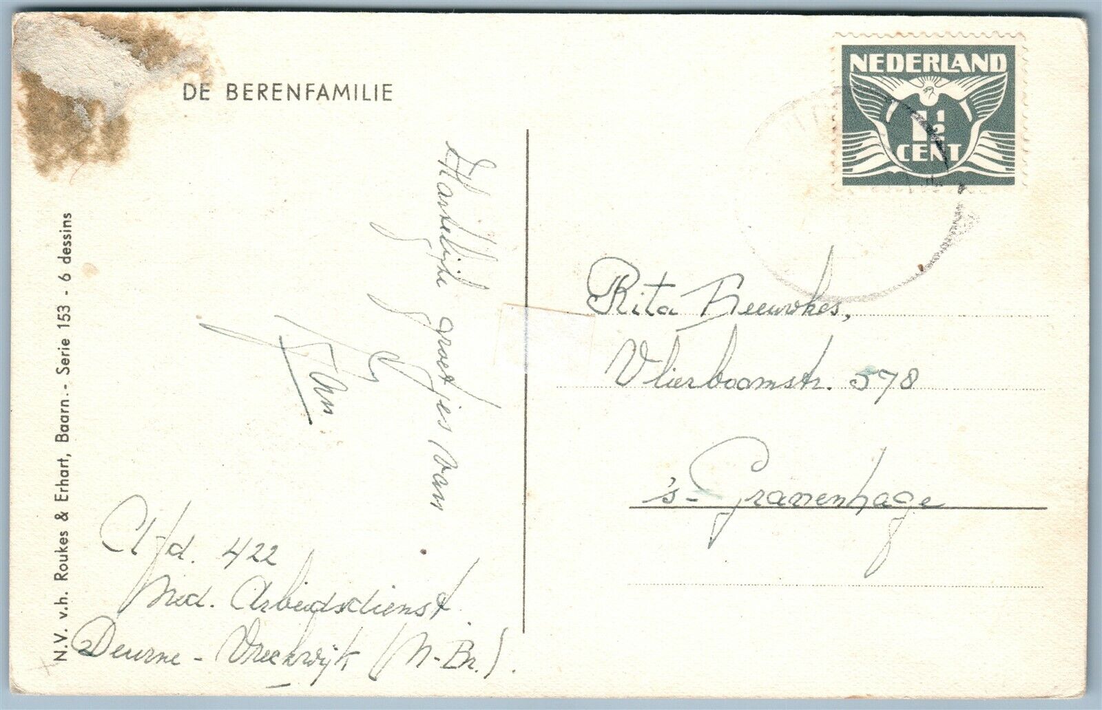 CAT FISHING BEARS VINTAGE POSTCARD