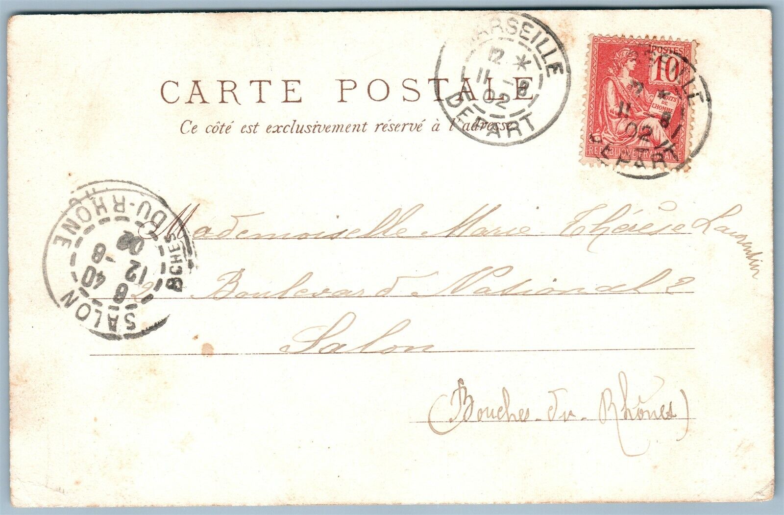 CAT & SWEEPER ANTIQUE POSTCARD w/ FRENCH STAMP