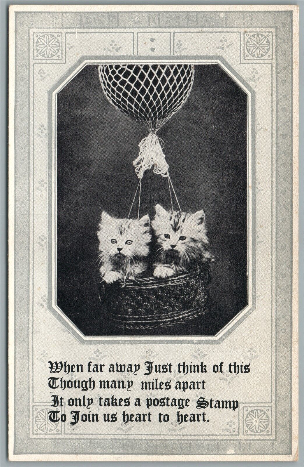 CATS in BASKET - THE ALARM ANTIQUE POSTCARD