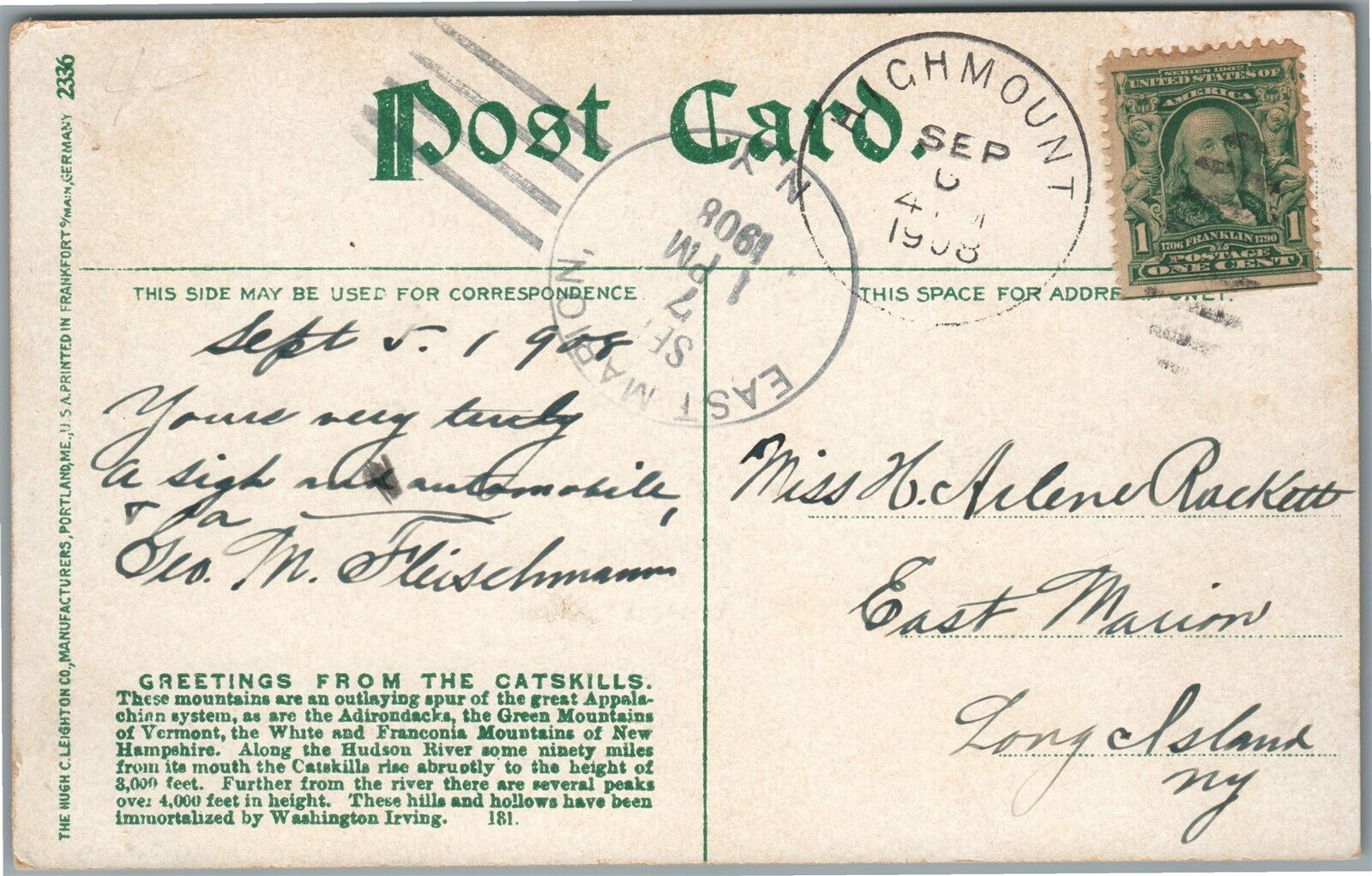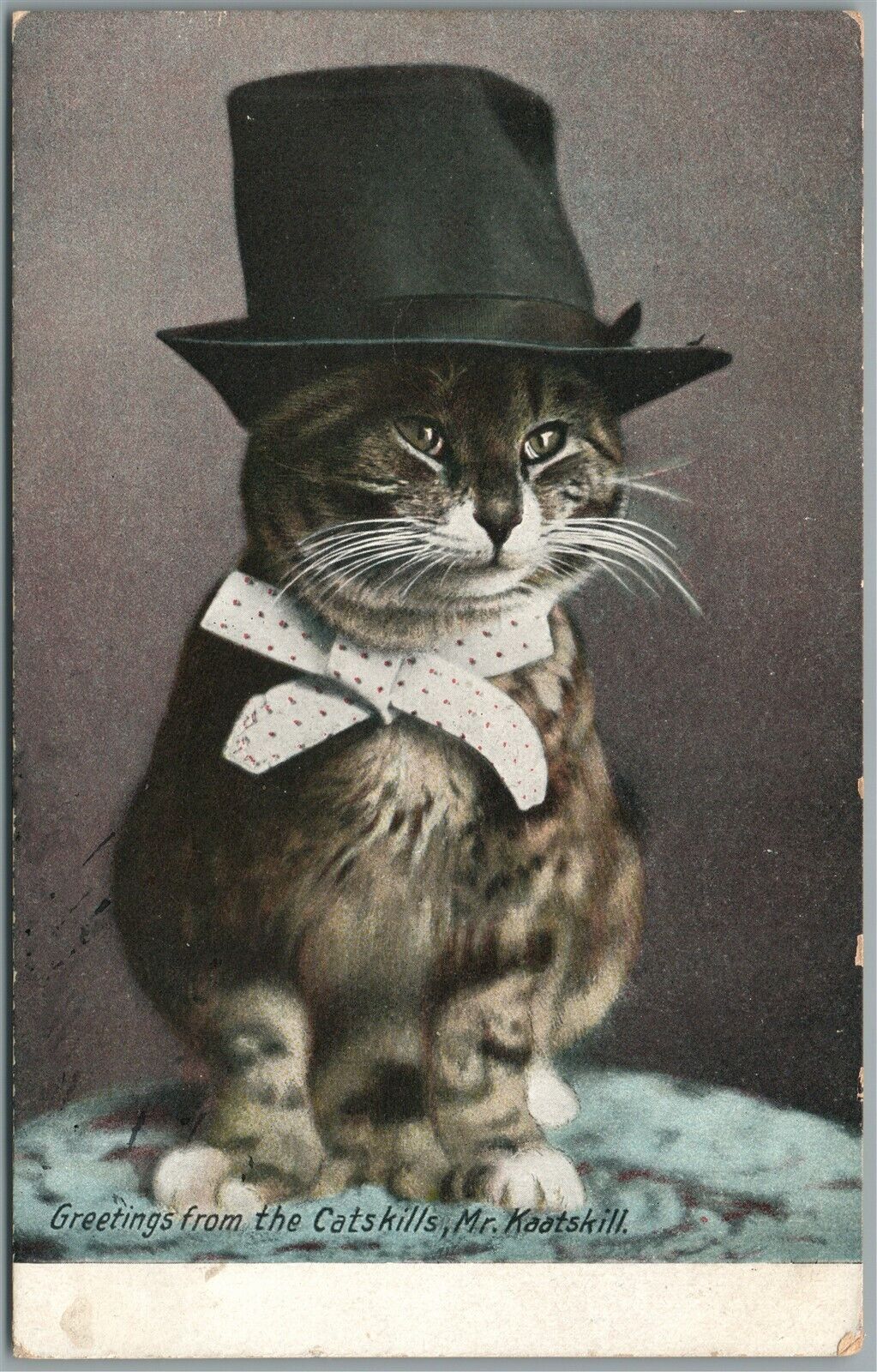 CATS in HAT CATSKILLS PA GREETINGS ANTIQUE POSTCARD