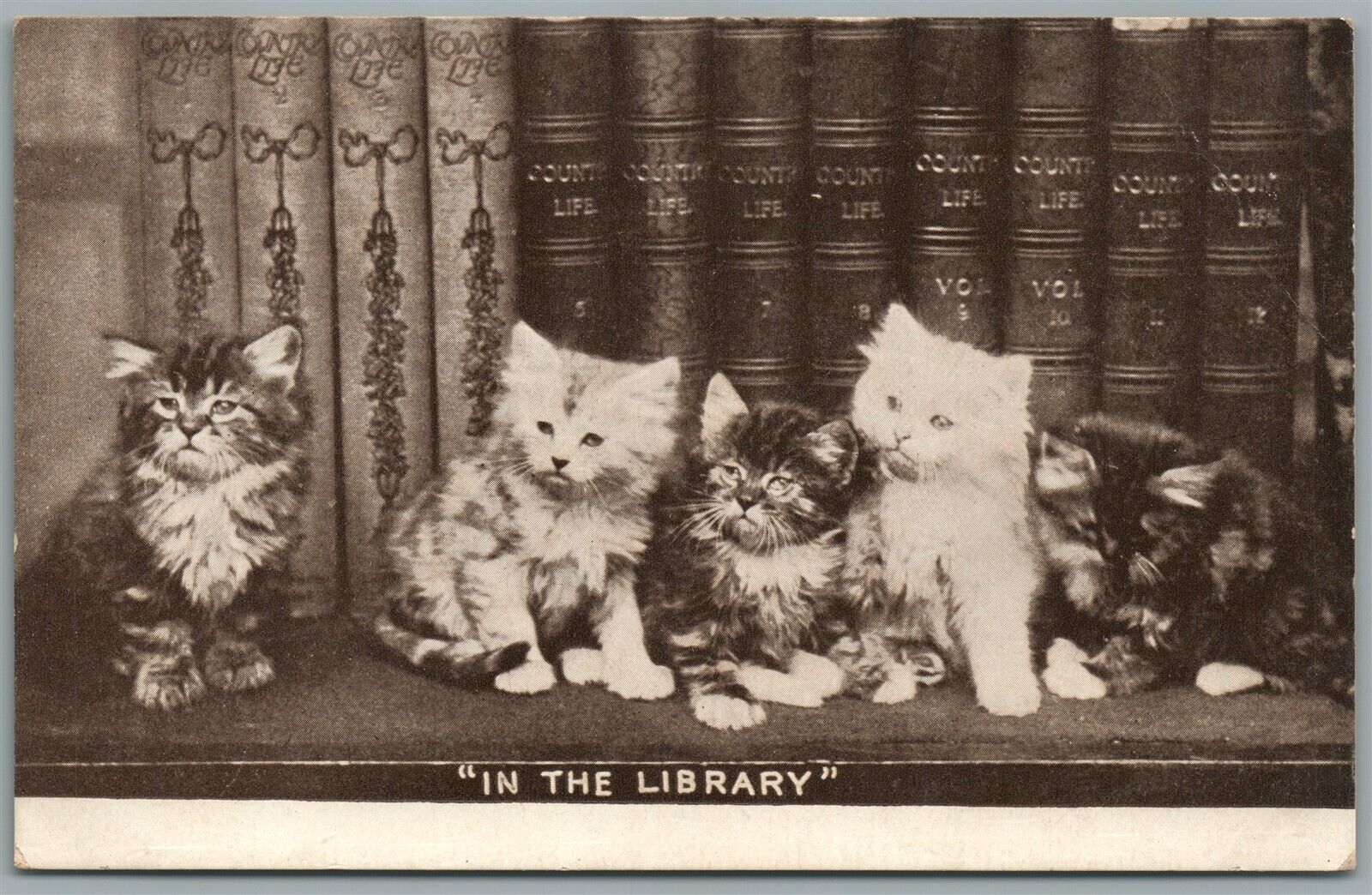 CATS in the LIBRARY ANTIQUE POSTCARD