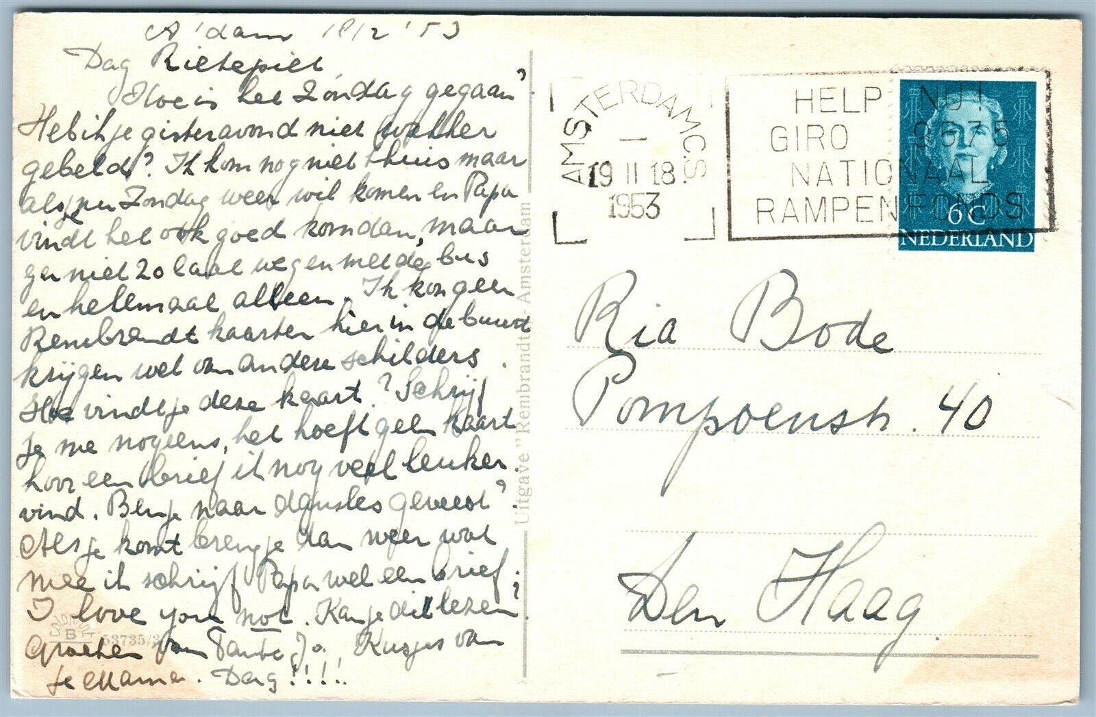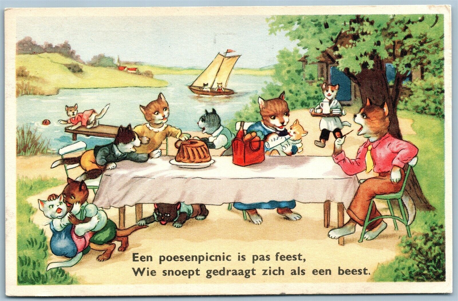 CAT'S PICNIC VINTAGE POSTCARD w/ NETHERLAND'S STAMP
