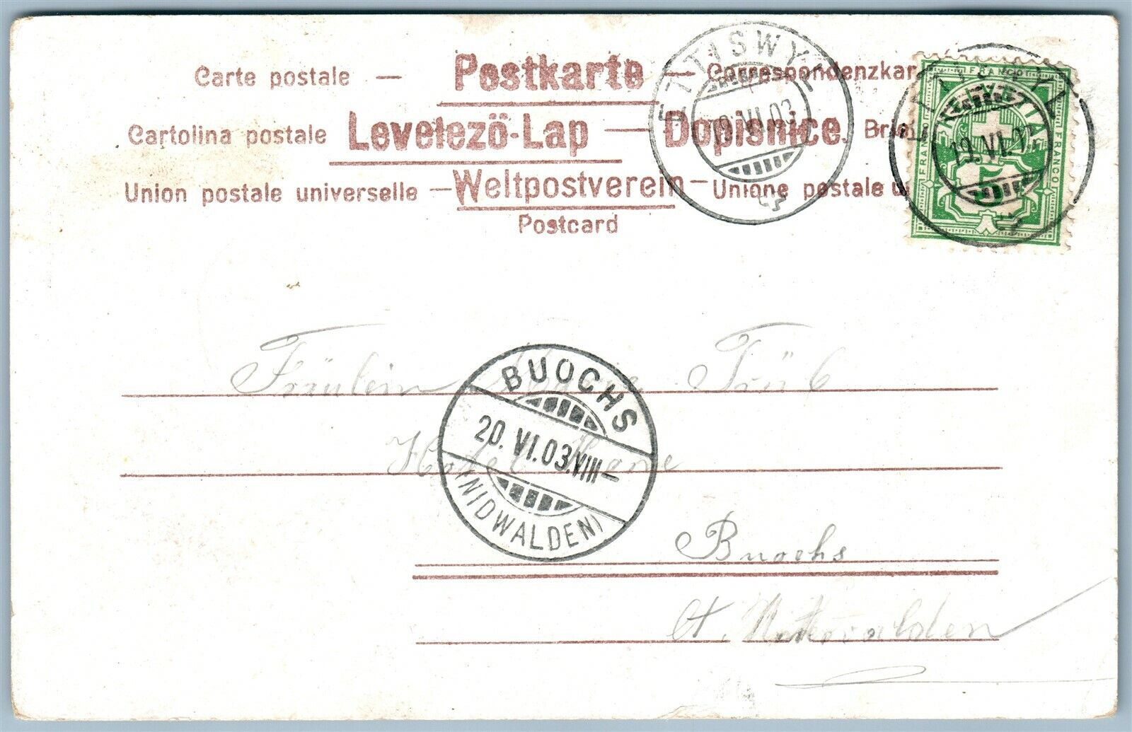 CATS w/ FLOWERS ANTIQUE POSTCARD w/ SWISS STAMP
