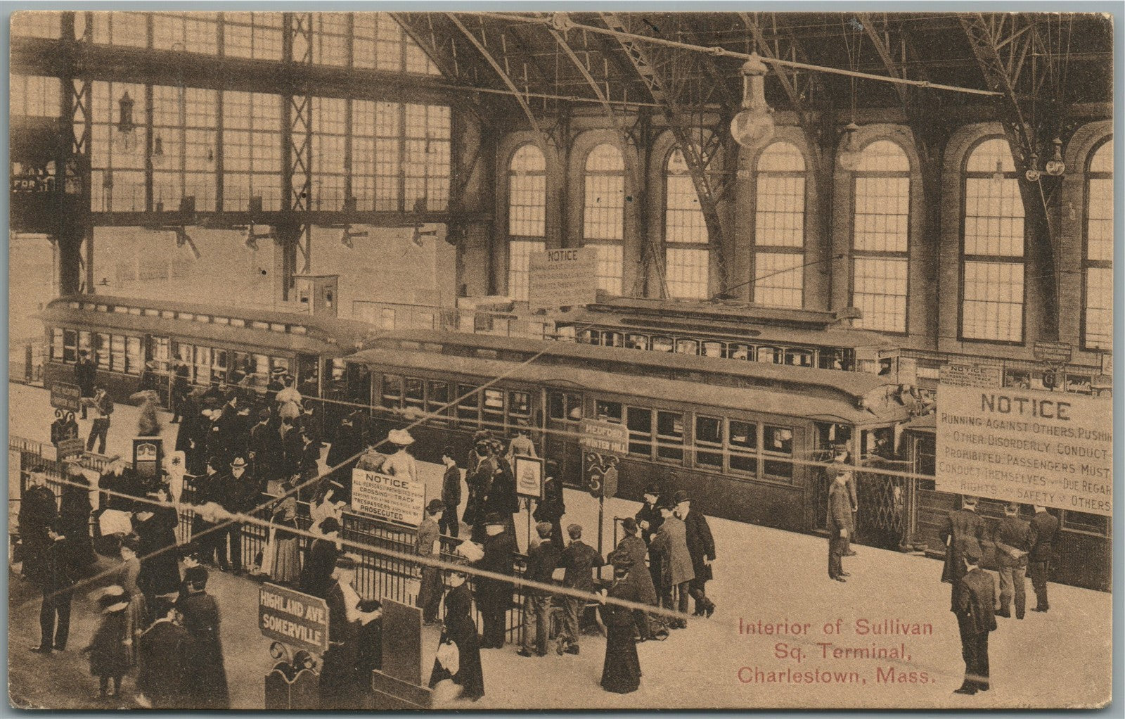 CHARLESTOWN MA SULLIVAN SQUARE ELEVATED STATION INTERIOR ANTIQUE POSTCARD