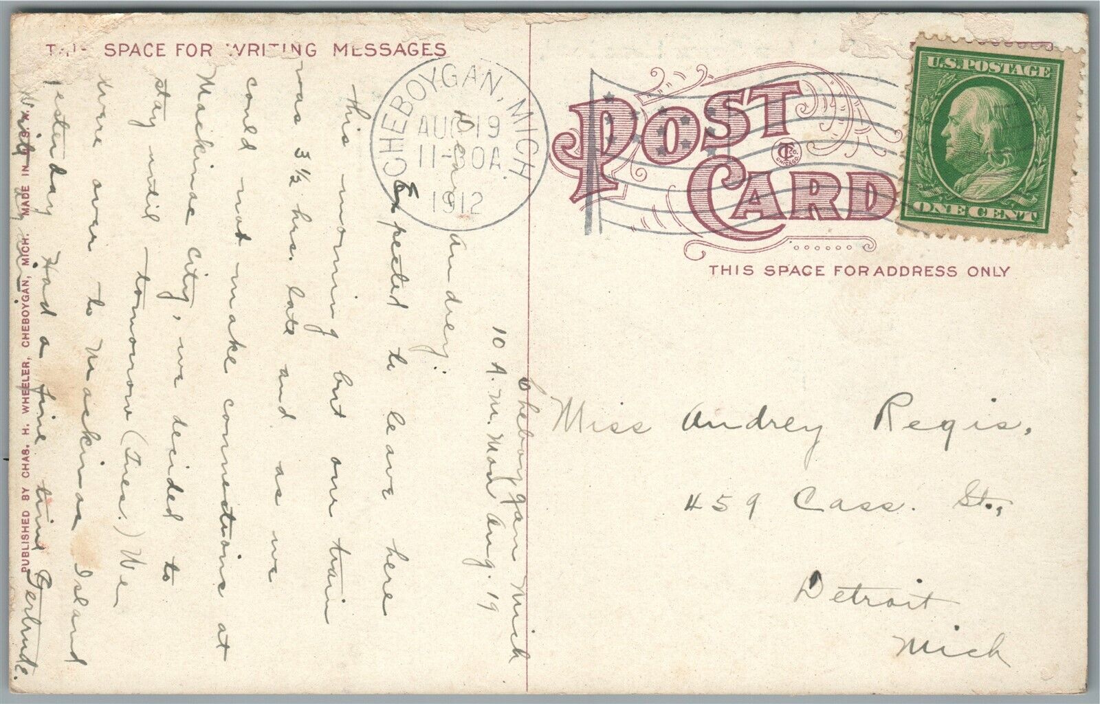 CHEBOYGAN MI MAIN STREET ANTIQUE POSTCARD