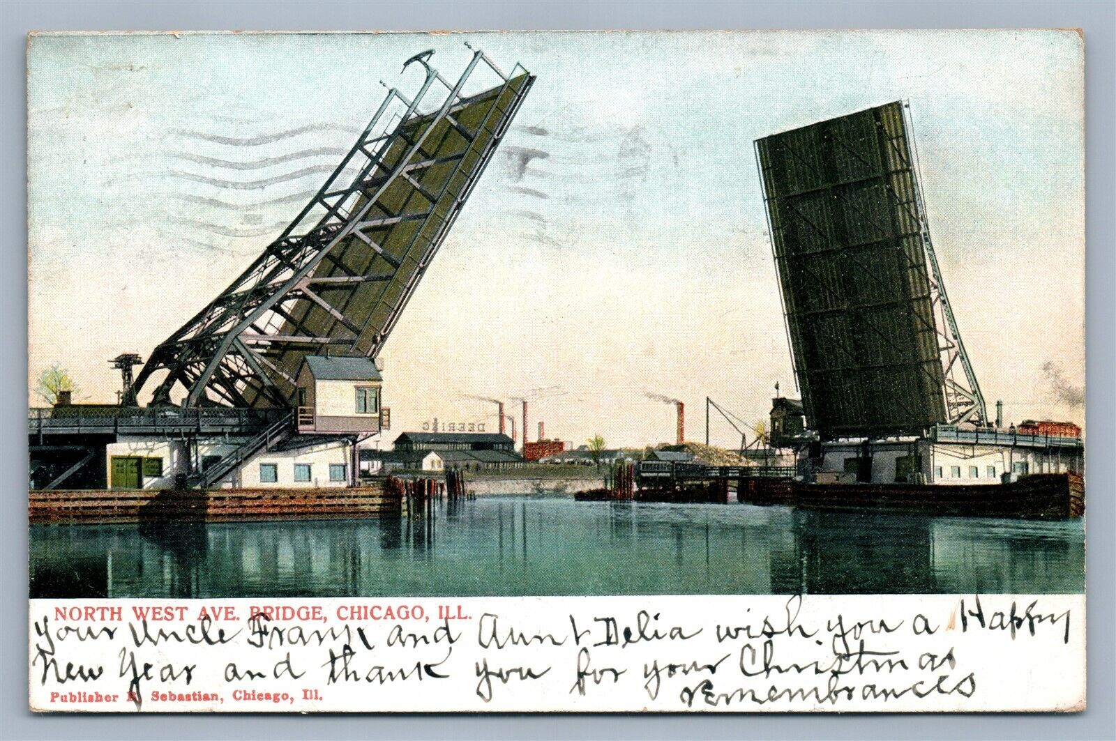 CHICAGO IL NORTH WEST AVENUE BRIDGE ANTIQUE POSTCARD