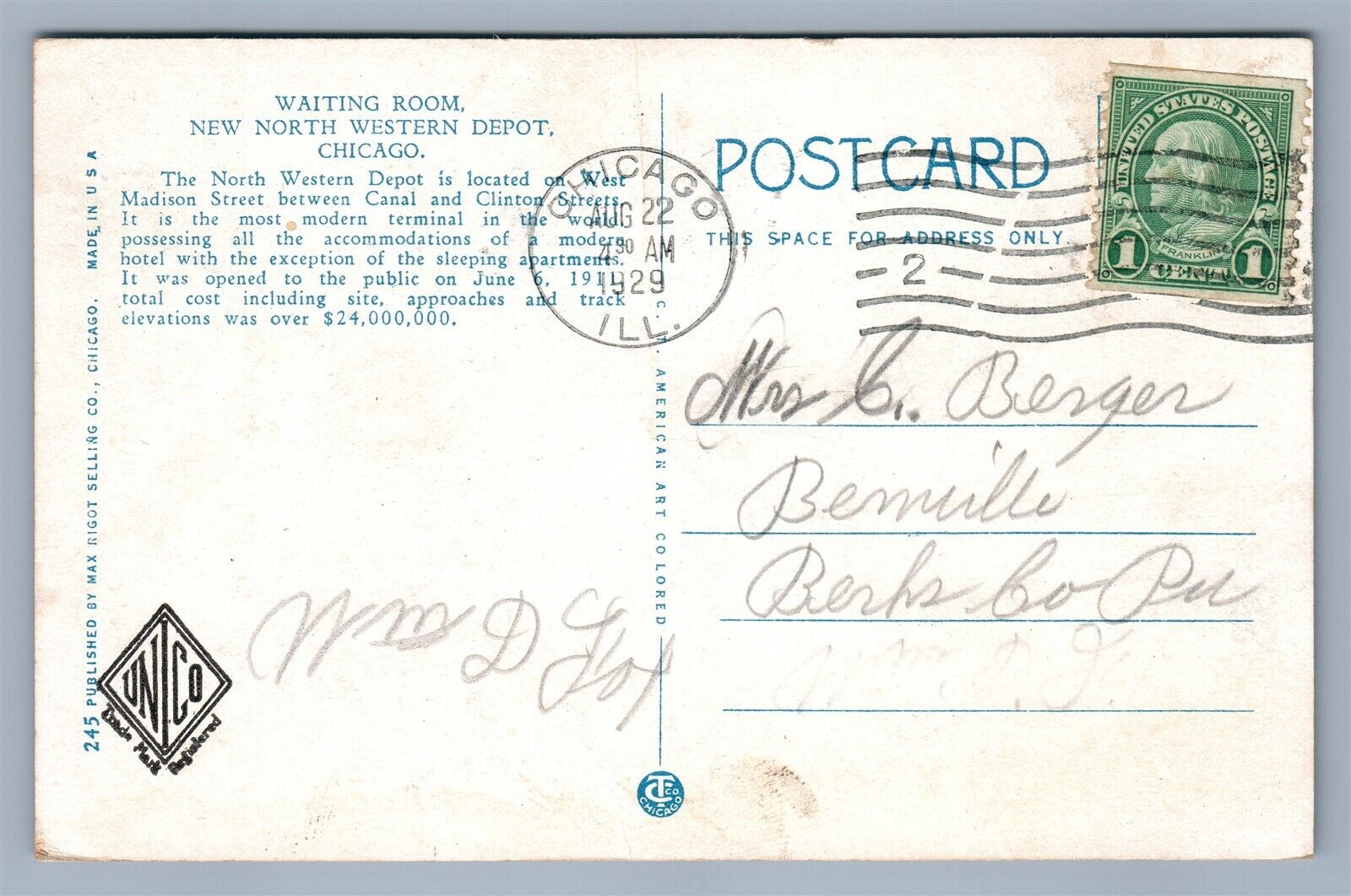 CHICAGO IL NORTHWESTERN DEPOT 1929 ANTIQUE POSTCARD railroad railway station