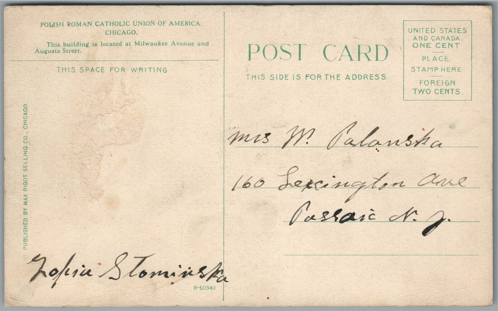 CHICAGO IL POLISH ROMAN CATHOLIC UNION of AMERICA ANTIQUE POSTCARD